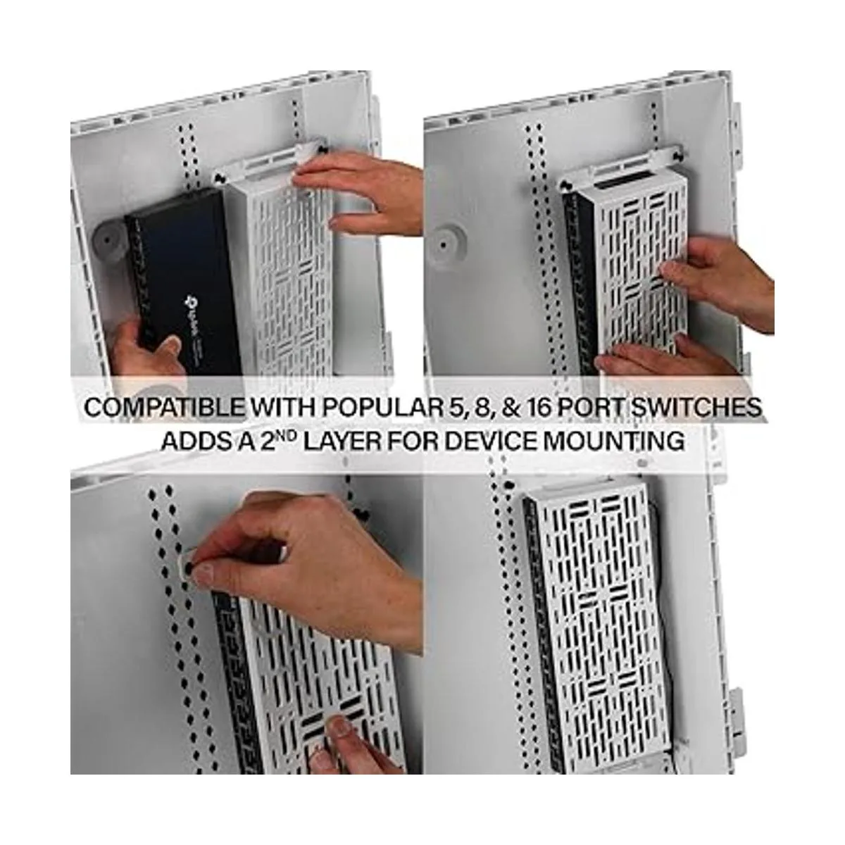 Cuando se combina con el AC1052CC, la placa de montaje de 5 pulgadas se puede configurar para proporcionar una plataforma de montaje elevada de segunda capa. El montaje elevado mejora el flujo de aire a los dispositivos y proporciona espacio adicional para montar componentes adicionales.