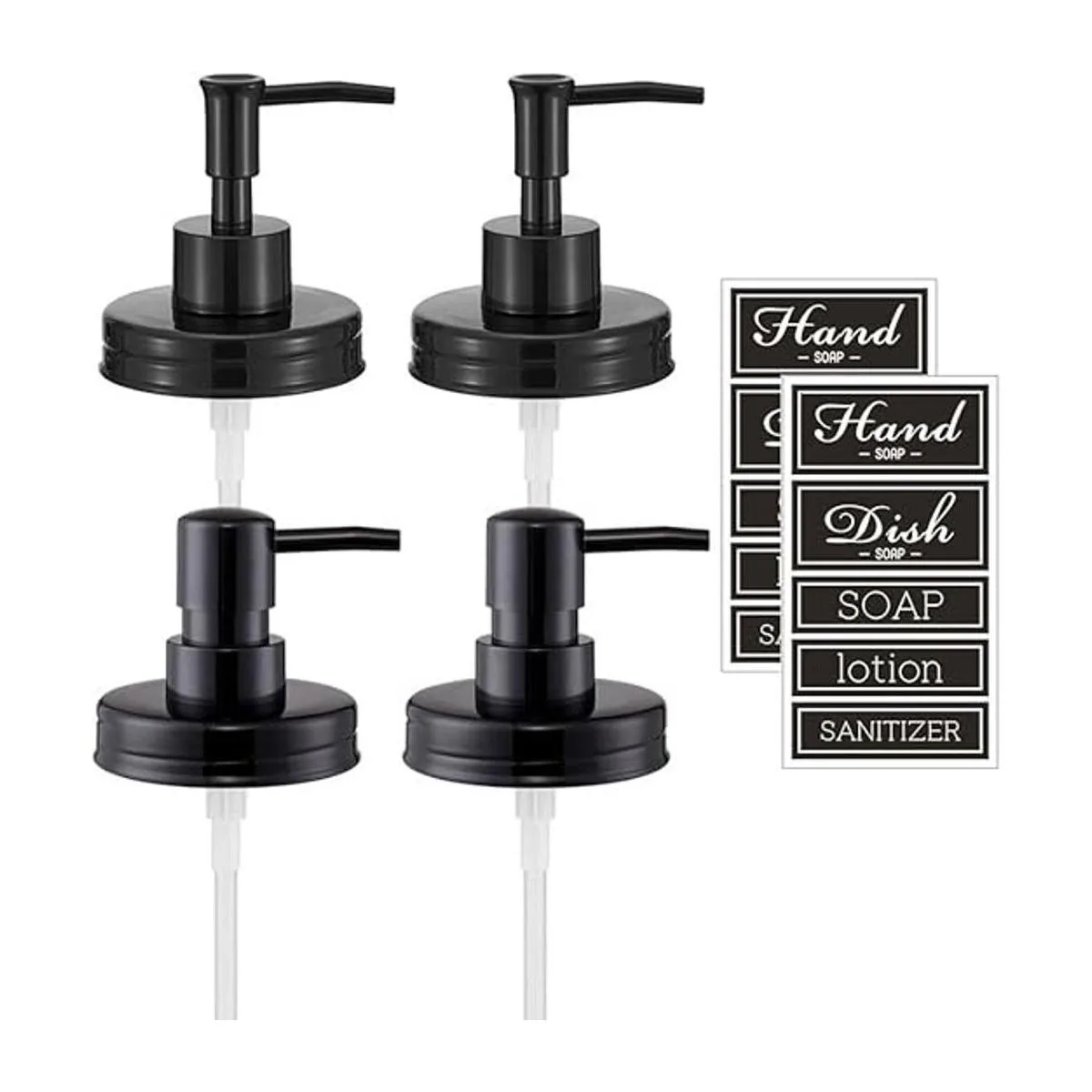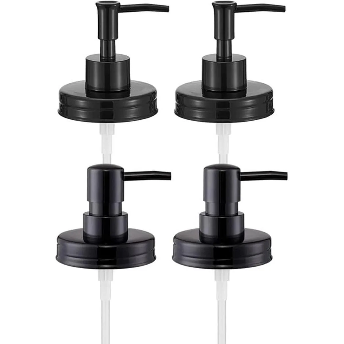 Onsogi Dispensador de jabón de plástico de boca regular, bombas y tapas, accesorios de tarro de masón, rústico, decoración y organización de baño, paquete de 4