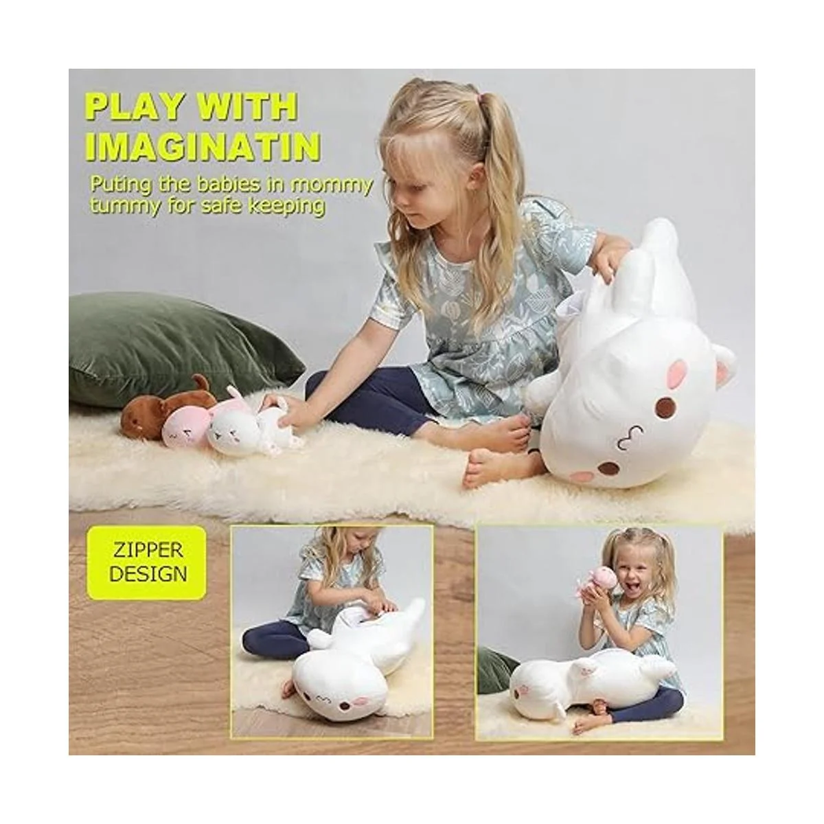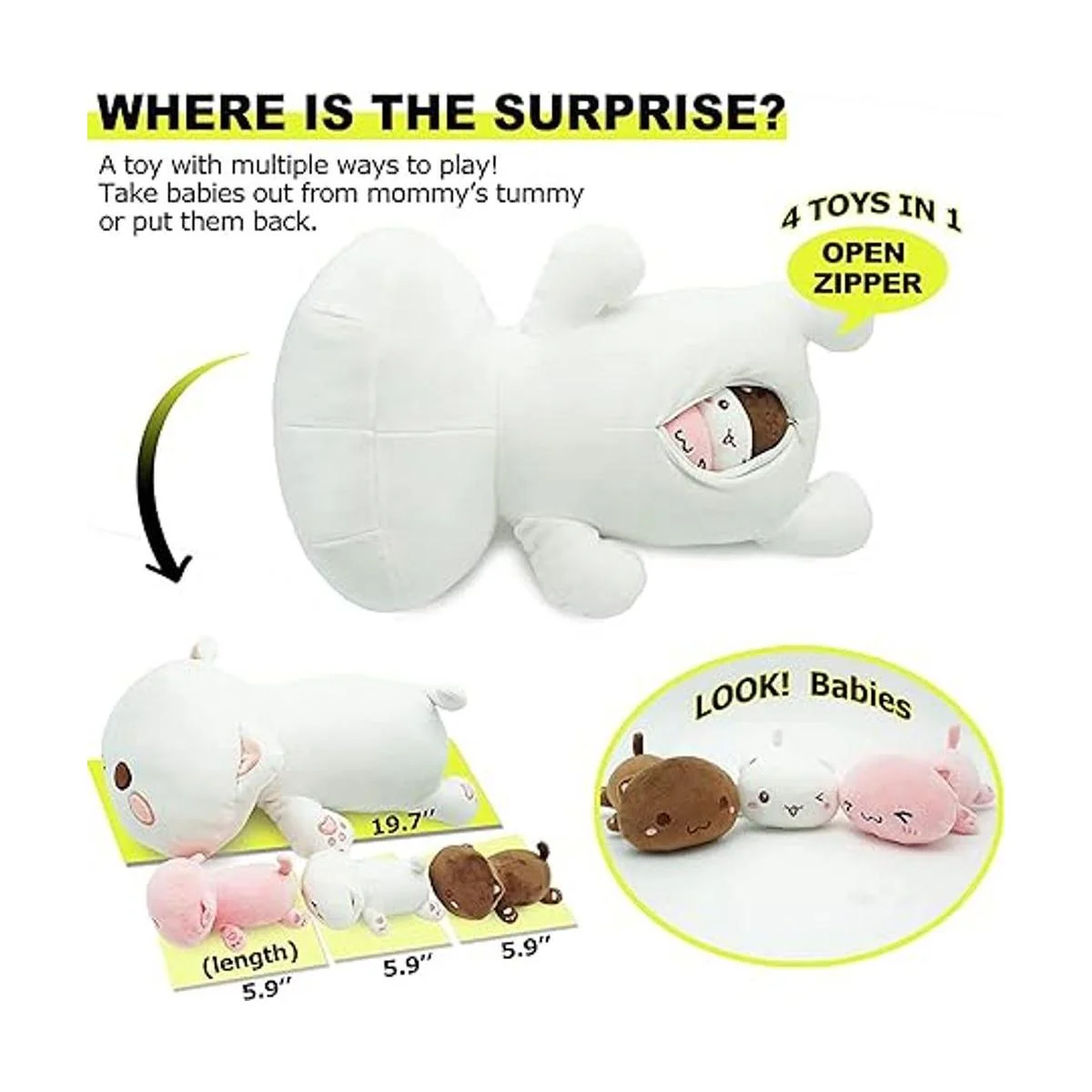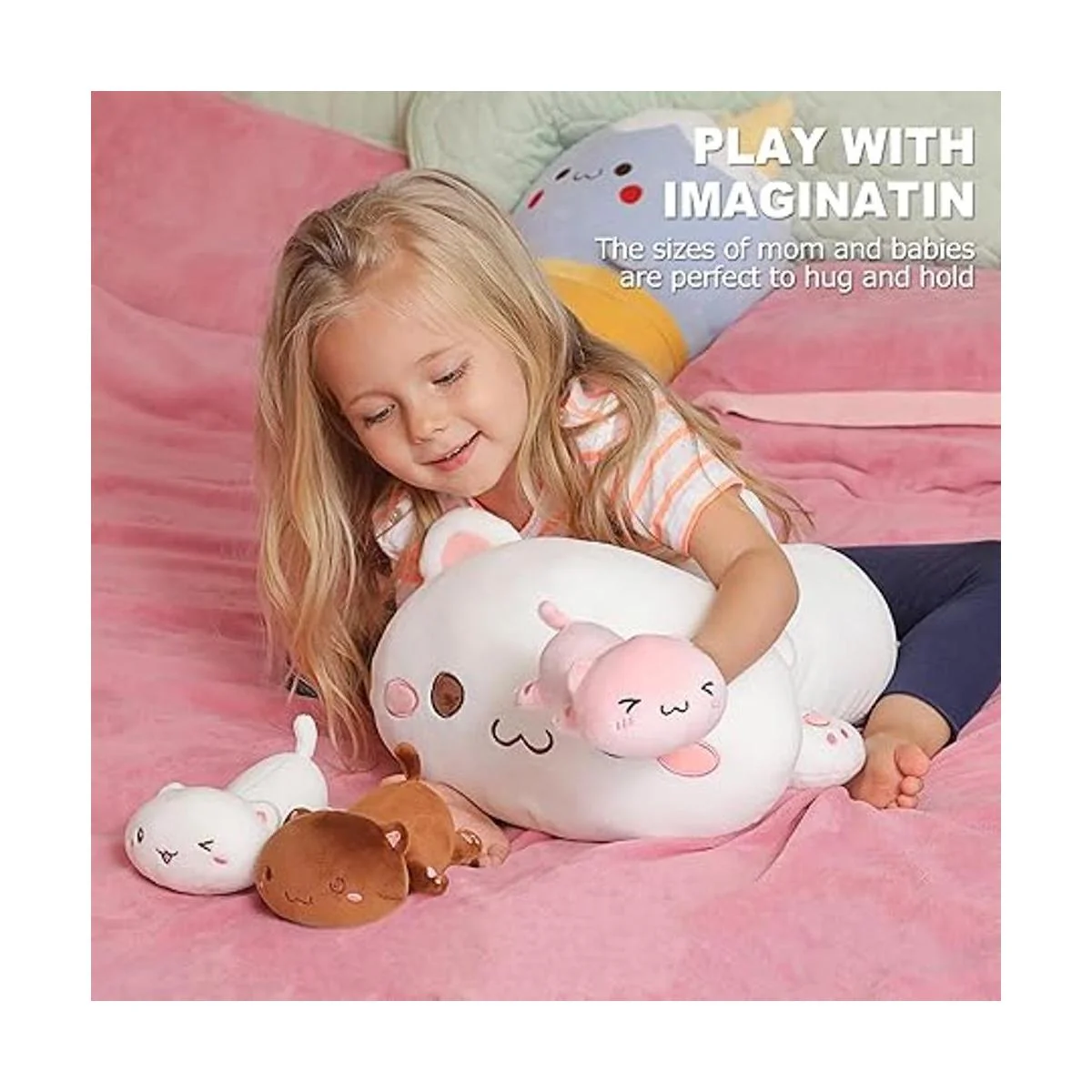 Onsoyours Animal de peluche para gatos, mamá de 19.7 pulgadas con 3 peluches de gatito, 4 piezas de lindos juguetes de almohada de felpa para niños y niñas familia de gatos blancos