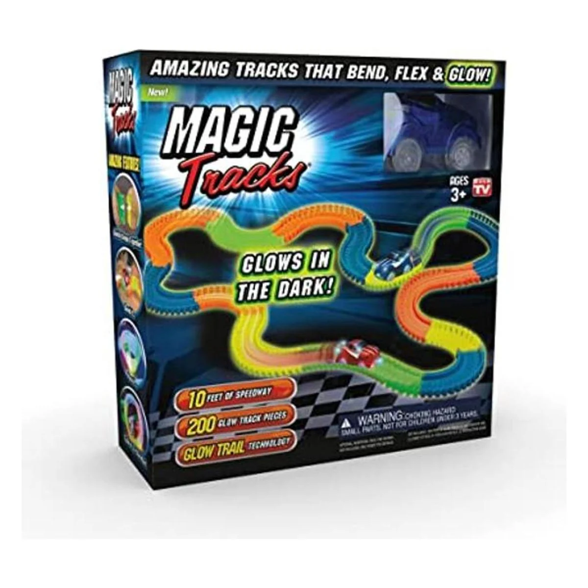 Ontel Magic Tracks Hipódromo flexible flexible que brilla en la oscuridad de 10 pies con luz LED, auto de carrera, juego educativo, regalo de cumpleaños para mayores de 3 años