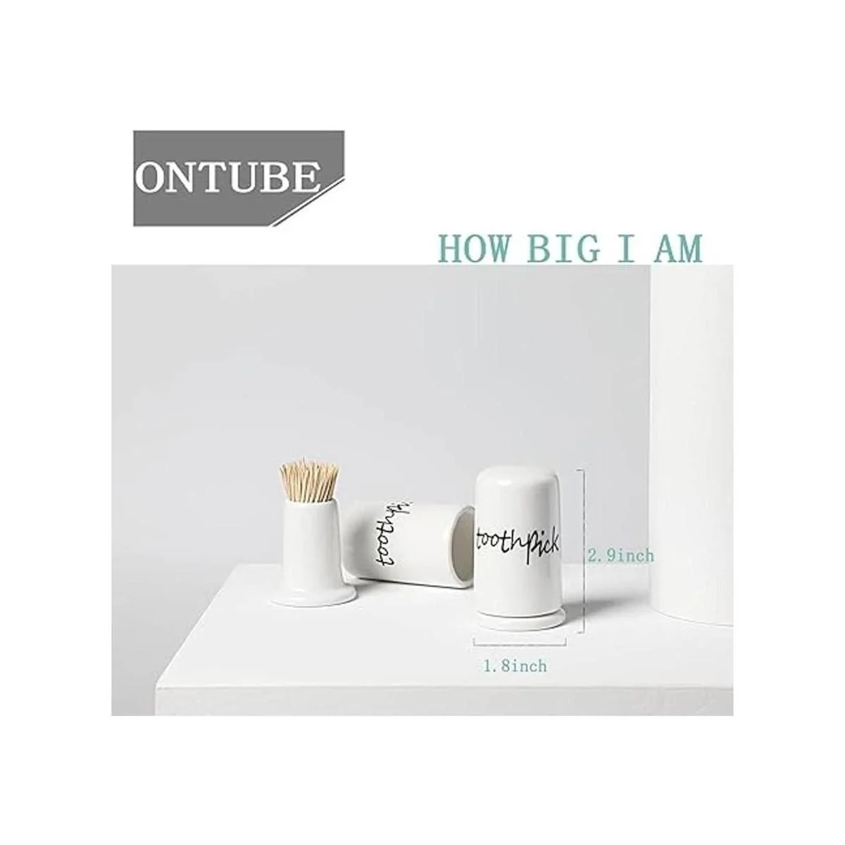 Humanizado Soporte para palillos de dientes ONTUBE de 1.8 pulgadas de largo x 1.8 pulgadas de ancho x 2.9 pulgadas de alto, 2 paquetes pueden satisfacer el uso diario. No subestimes este soporte para palillos de dientes, que puede contener más de 100 palillos de dientes.