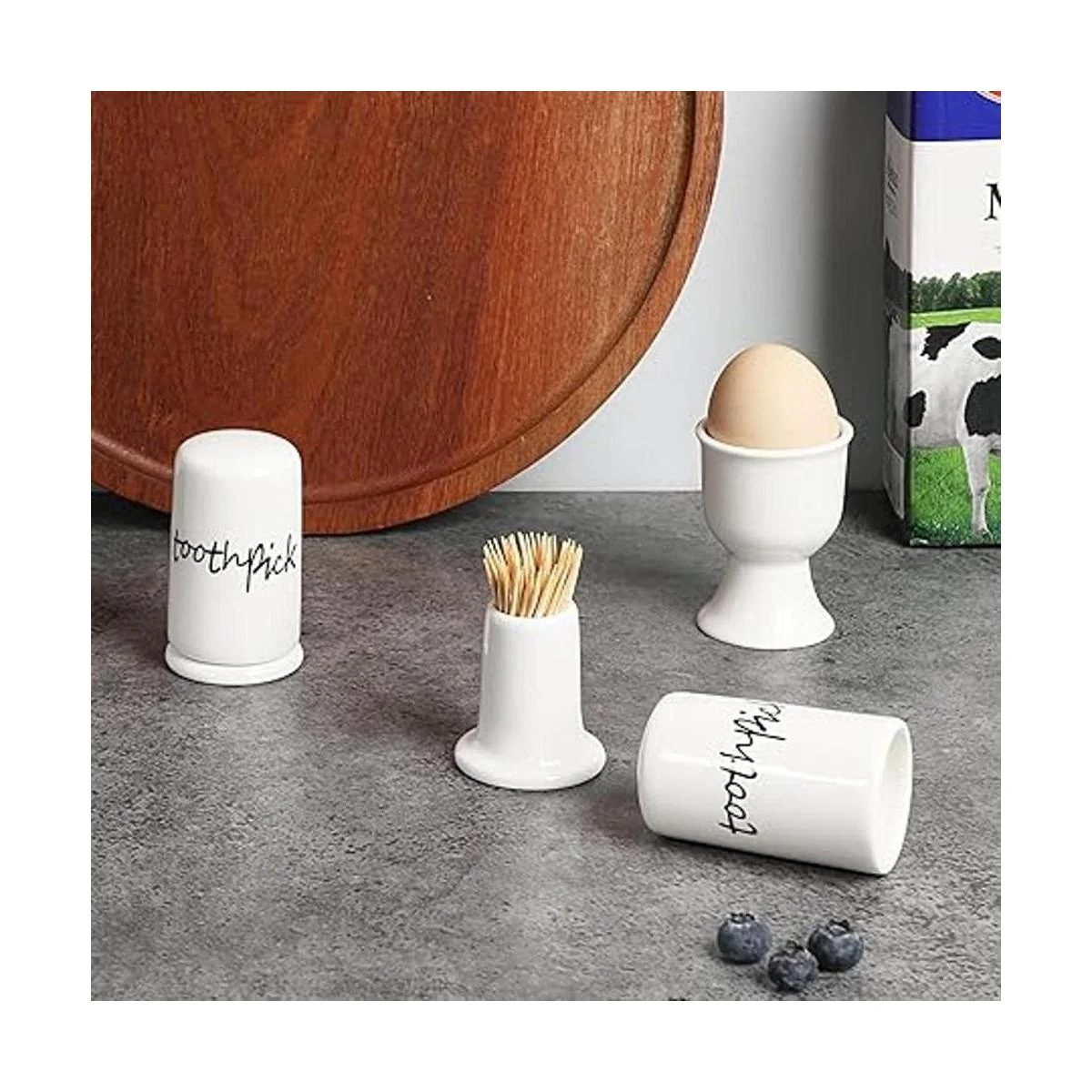 ONTUBE Dispensador de palillos de cerámica con tapa, juego de 2, color blanco