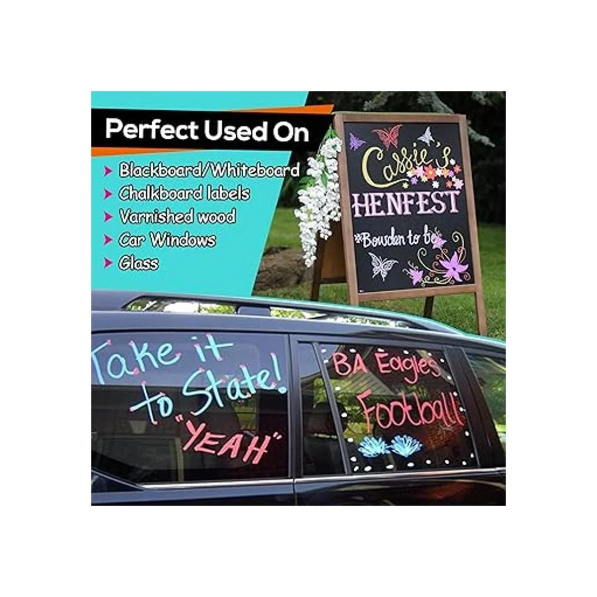 Divertido y versátil: La tiza puede ser ideal para pizarras de menú de restaurante, tableros de bistro, pizarrones blancos, pizarra LED, marcadores de ventana y espejo, ventanas de coche, arte para niños, trabajo escolar, fechas de marcado en contenedores de alimentos, tazas de cerámica, papel de contacto de pizarra, etiquetas de pizarra, calcomanías de agradecimiento, adhesivos de pared y mucho más. Sala para bodas, coche de boda, decoración de ventanas de espectáculos, actividades de padres e hijos, dibujo de enseñanza escolar, etc.