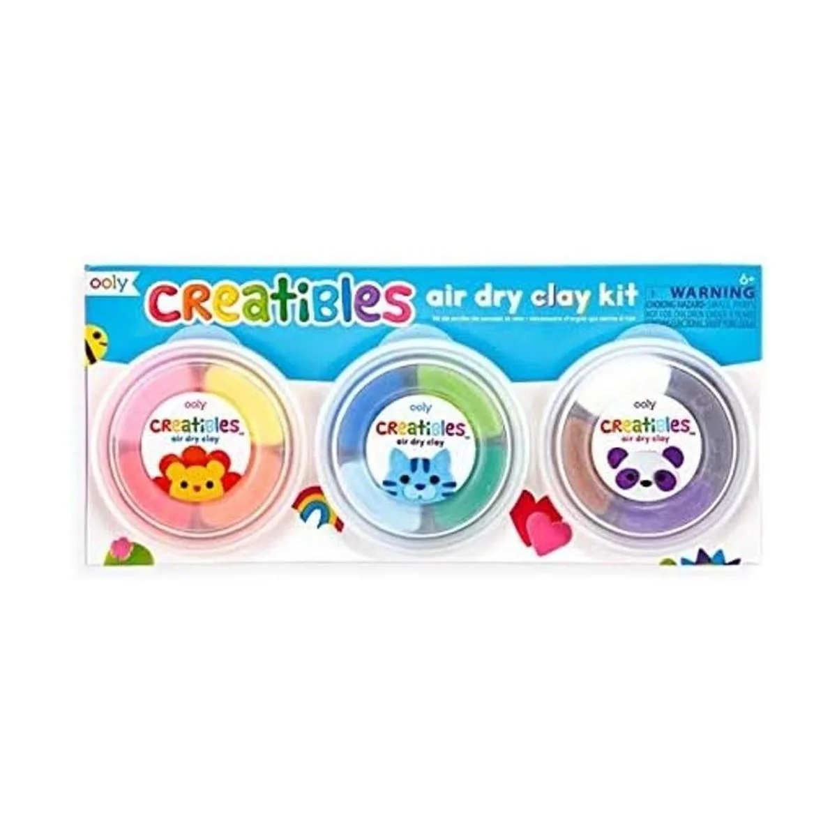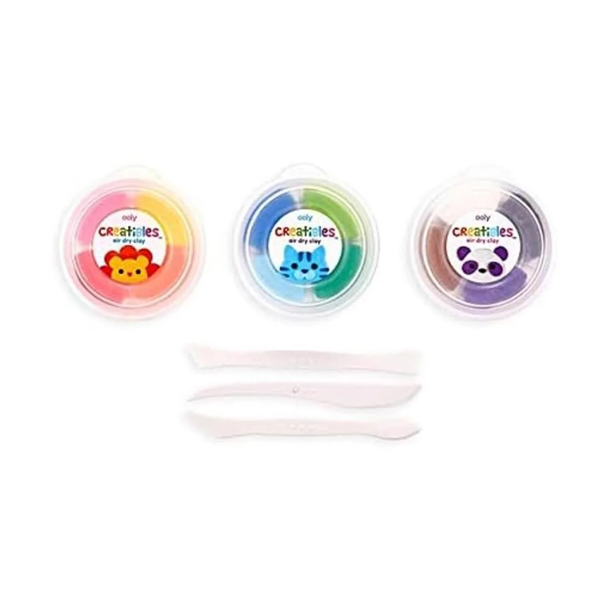 OOLY, Creatibles, kit de arcilla seca al aire, juego de manualidades para niños, 3 herramientas de moldeo 12 colores
