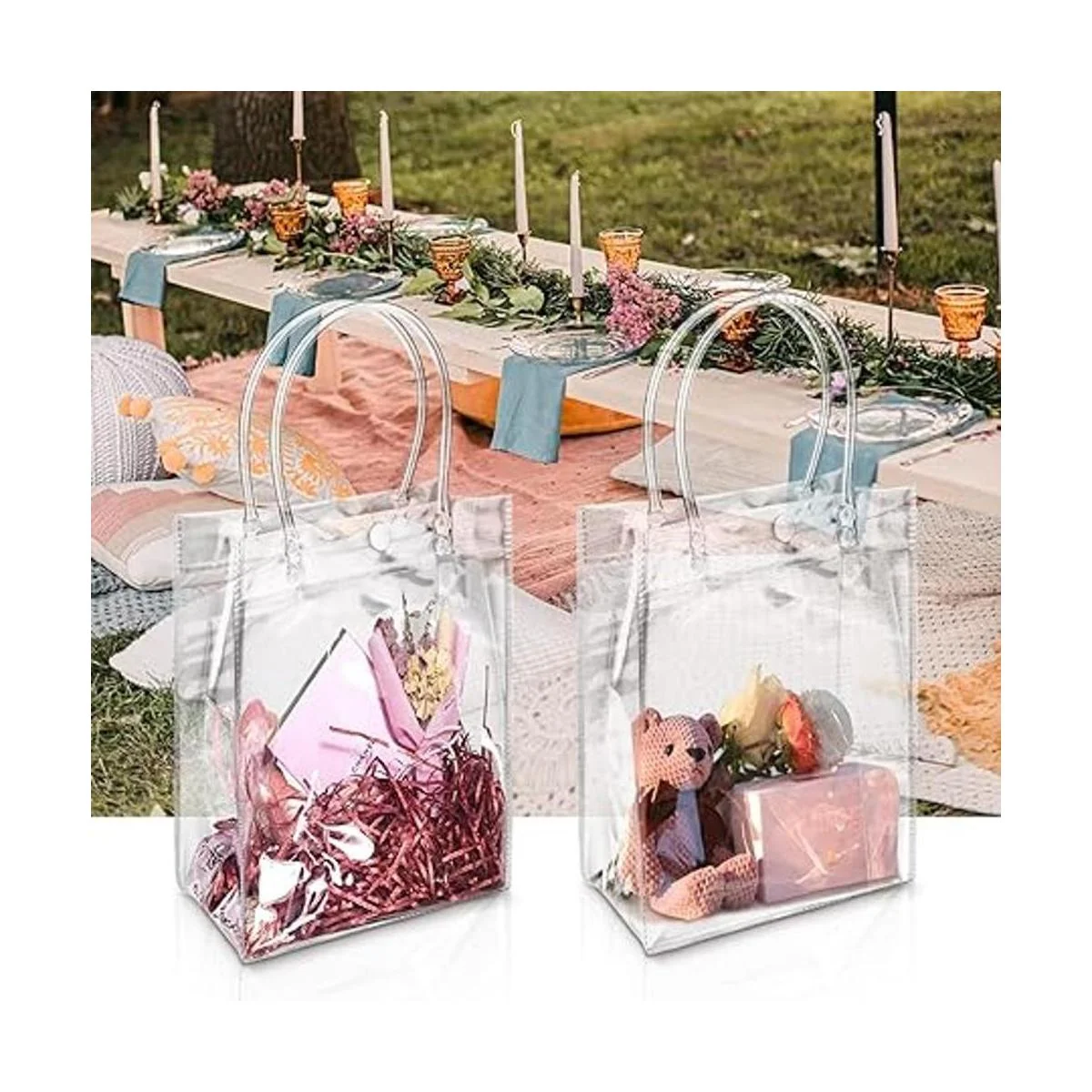 Oomcu Paquete de 18 bolsas de regalo de plástico de PVC transparente con asa, bolsas de plástico reutilizables para compras, artículos al por menor, negocios, boutique, boda, cumpleaños, baby shower 9.06 x 6.7 x 2.76 pulgadas