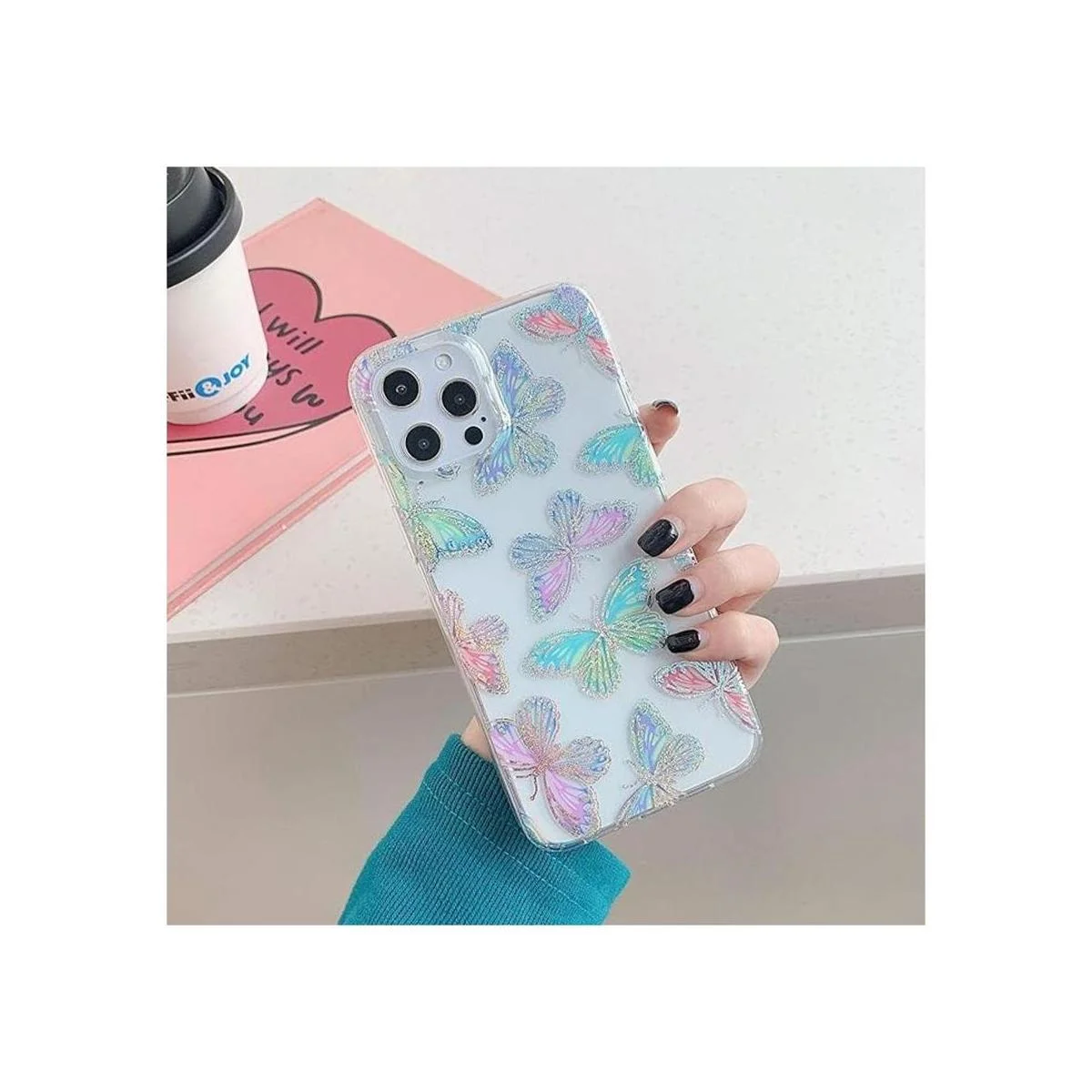 ooooops Funda compatible con iPhone 1212 Pro para mujeres y niñas, con purpurina, rojo, morado, azul, verde, alas coloridas, delgada y suave borde rígido, funda protectora para iPhone 12 12Pro 6.1 mariposa