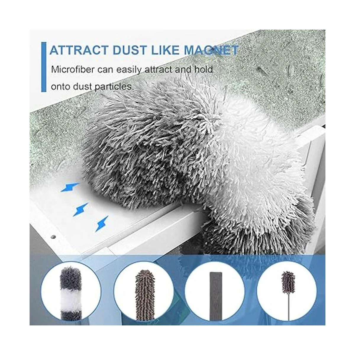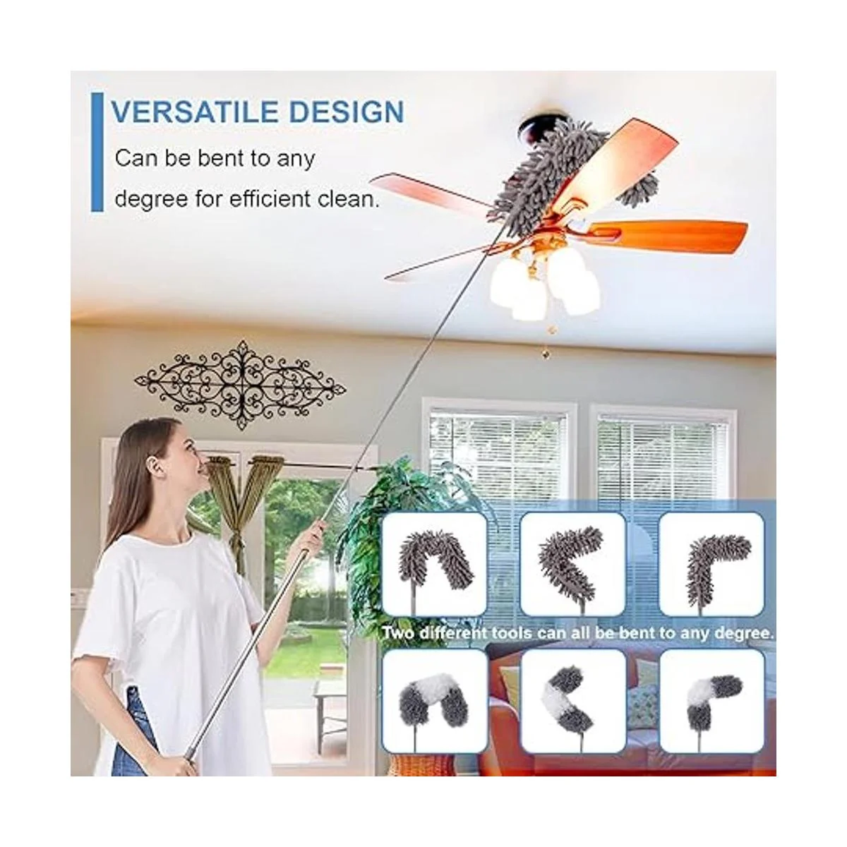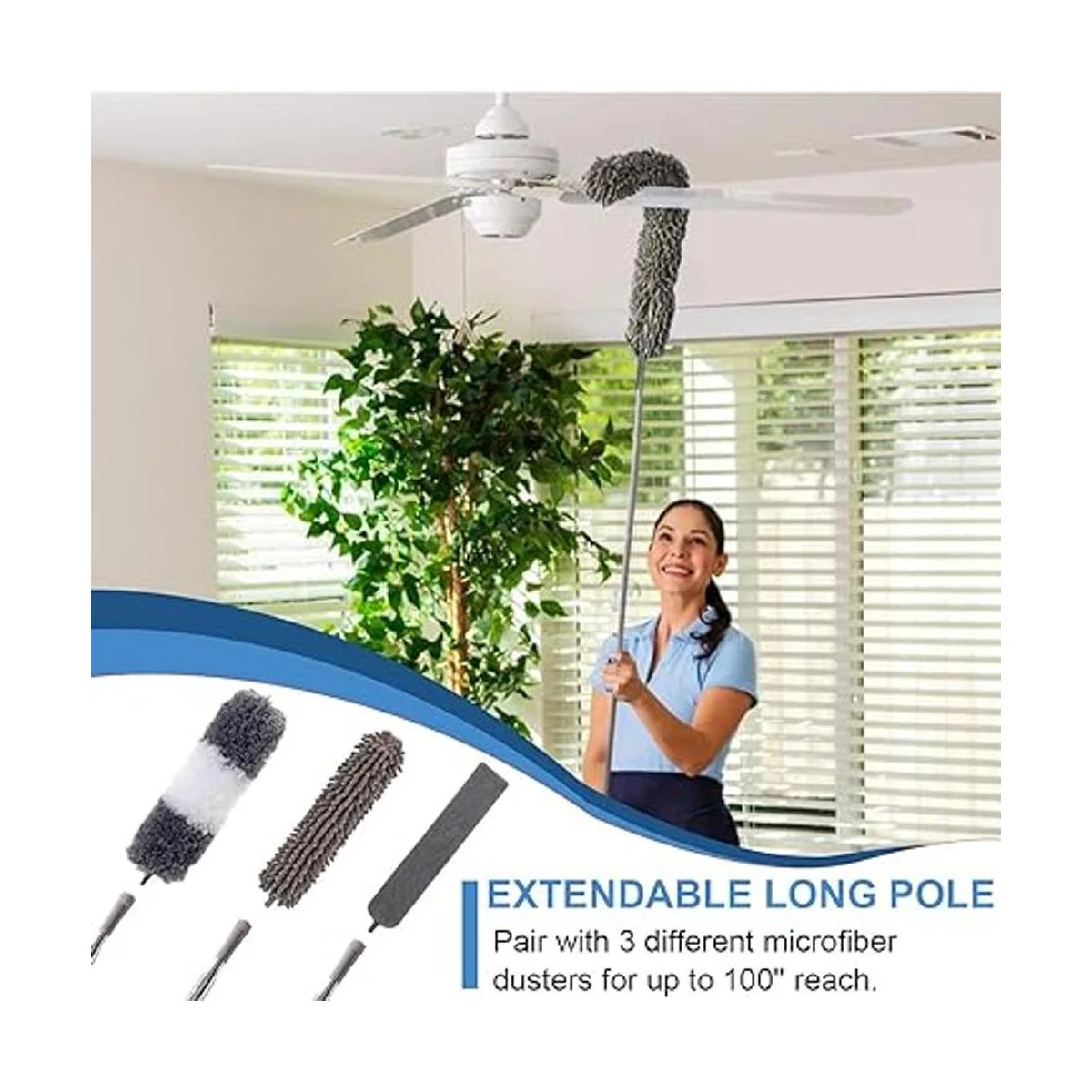 Poste largo extensible de 100 pulgadas para techo alto: el poste largo de acero inoxidable mejorado es más resistente y no gira, puede alcanzar hasta 100 pulgadas. Se fija a 3 plumeros de microfibra diferentes, te permite quitar telarañas/ventilador de techo alto fácil y eficazmente sin subir escaleras peligrosamente el plumero de mano de microfibra de chenilla también se puede extender a 28 pulgadas.
