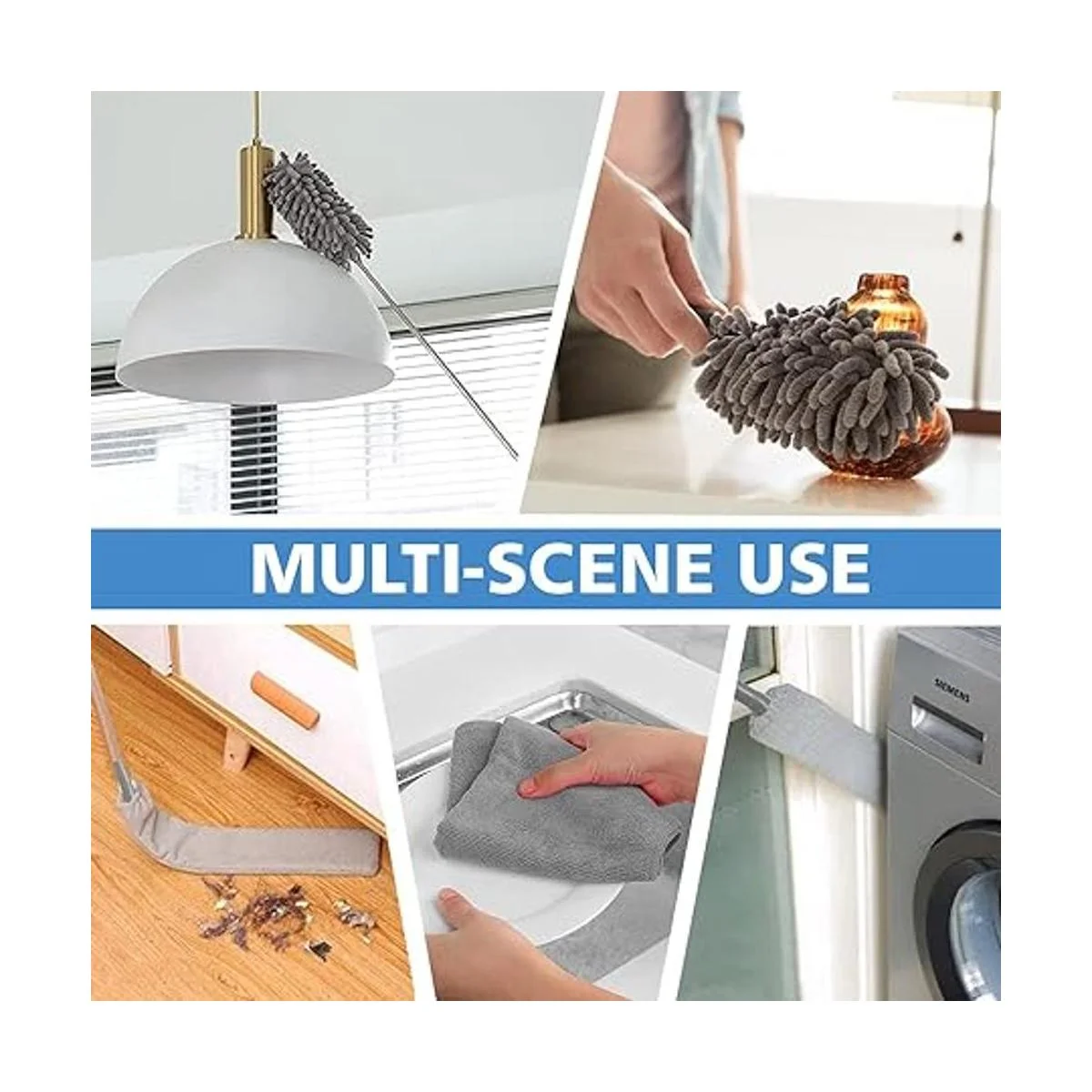Se puede doblar a cualquier grado: tanto el plumero de microfibra como el plumero de microfibra de chenilla se pueden doblar a cualquier grado para una limpieza de alta eficiencia. El plumero no solo se puede utilizar plano para entrar en zonas de difícil acceso como los lados de grandes electrodomésticos, sino que también se dobla para limpiar suavemente estantes, ventiladores de techo alto, marcos de fotos o cualquier otro colector de polvo en el hogar u oficina.