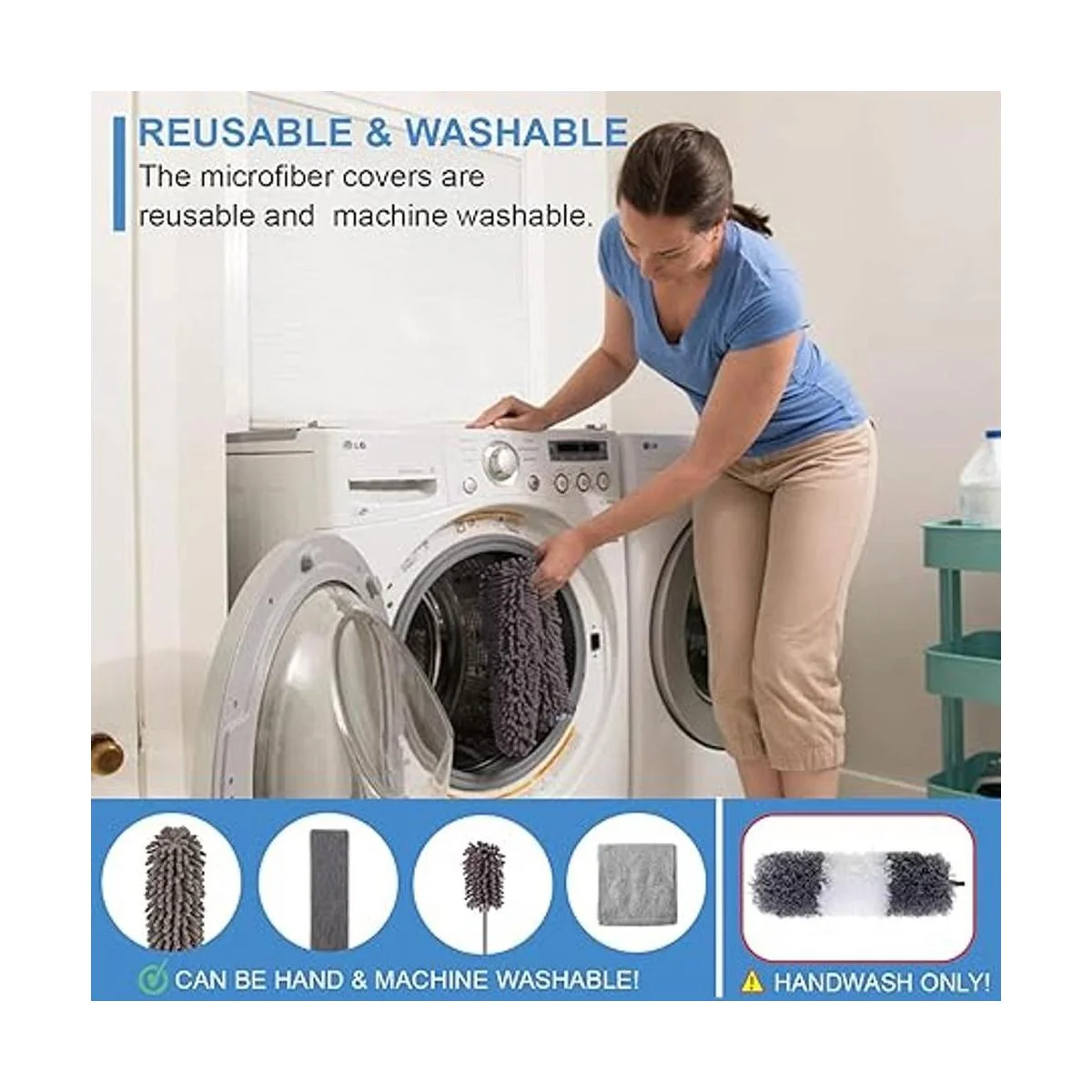 Lavar y reutilizar cientos de veces: las fundas de microfibra son reutilizables y totalmente lavables a máquina. Simplemente retira la funda y métela en el lavado con el paño de limpieza de microfibra el plumero de microfibra solo se puede lavar directamente a mano. Puedes terminarlo en una fracción del tiempo Facilita la limpieza.