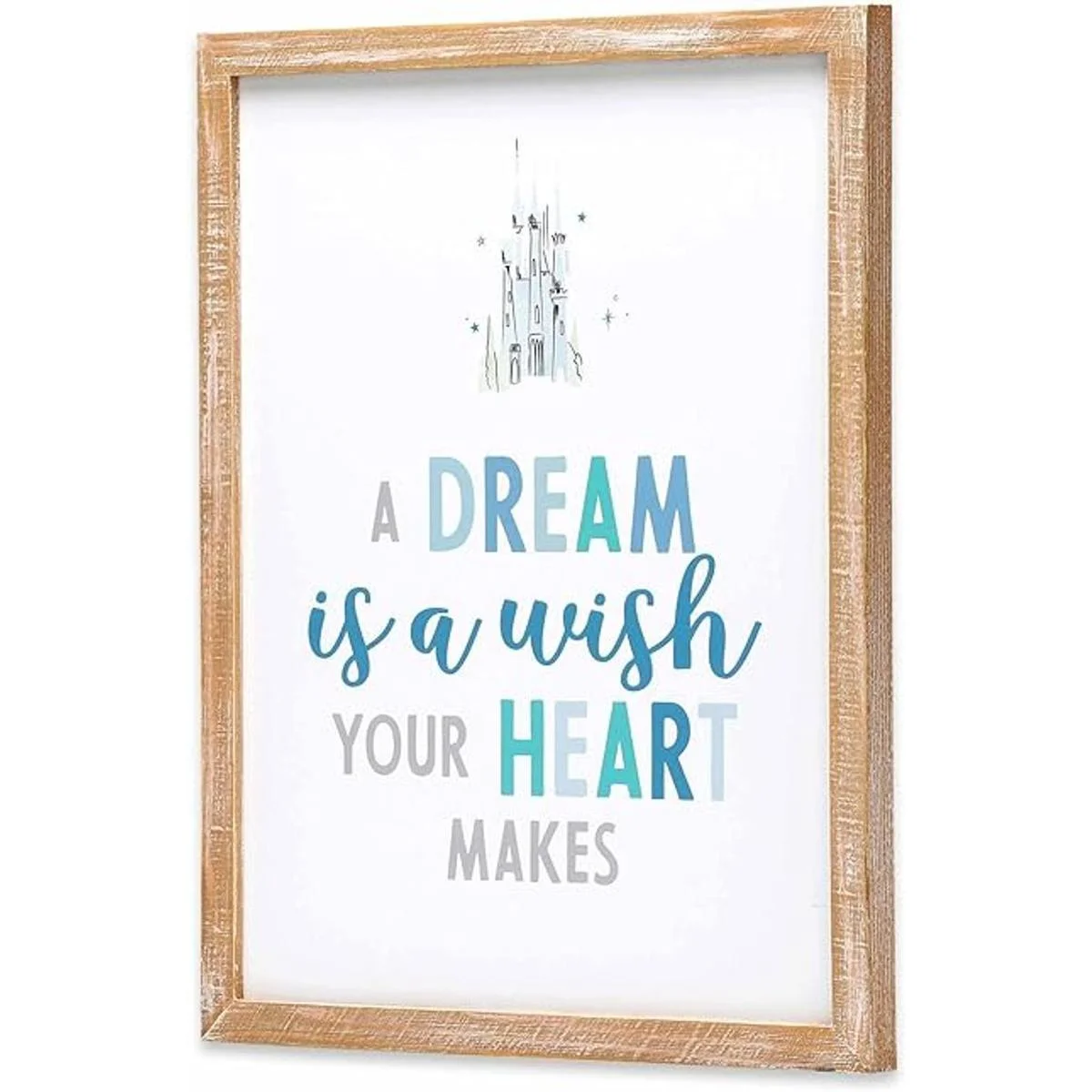 Open Road Brands Arte de pared de castillo de Cenicienta de Disney Princess Un sueño es un deseo que tu corazón hace, bonita decoración de pared de madera con marco de Cenicienta