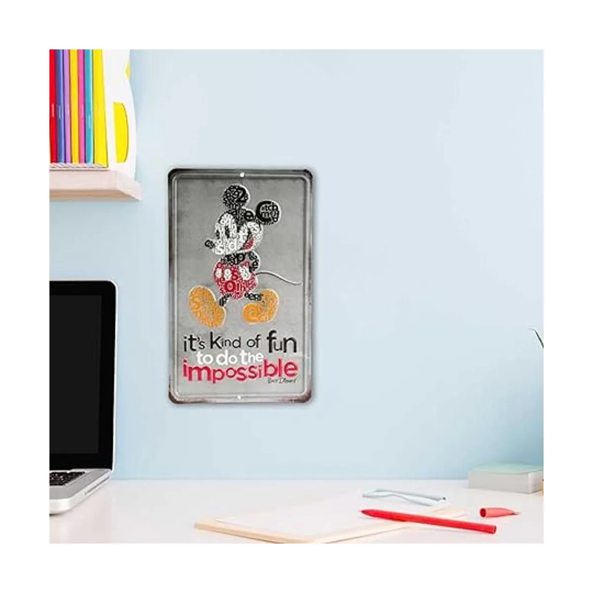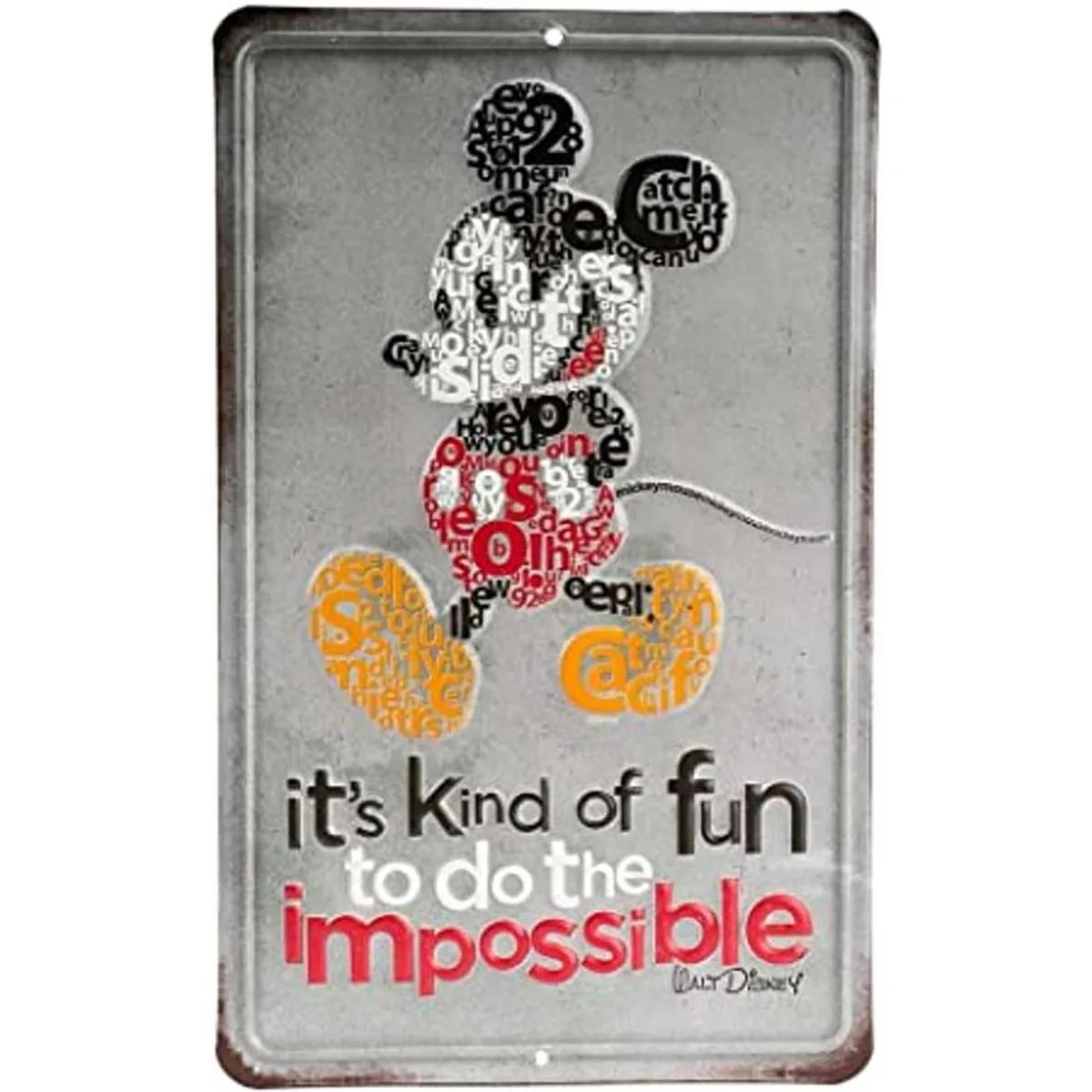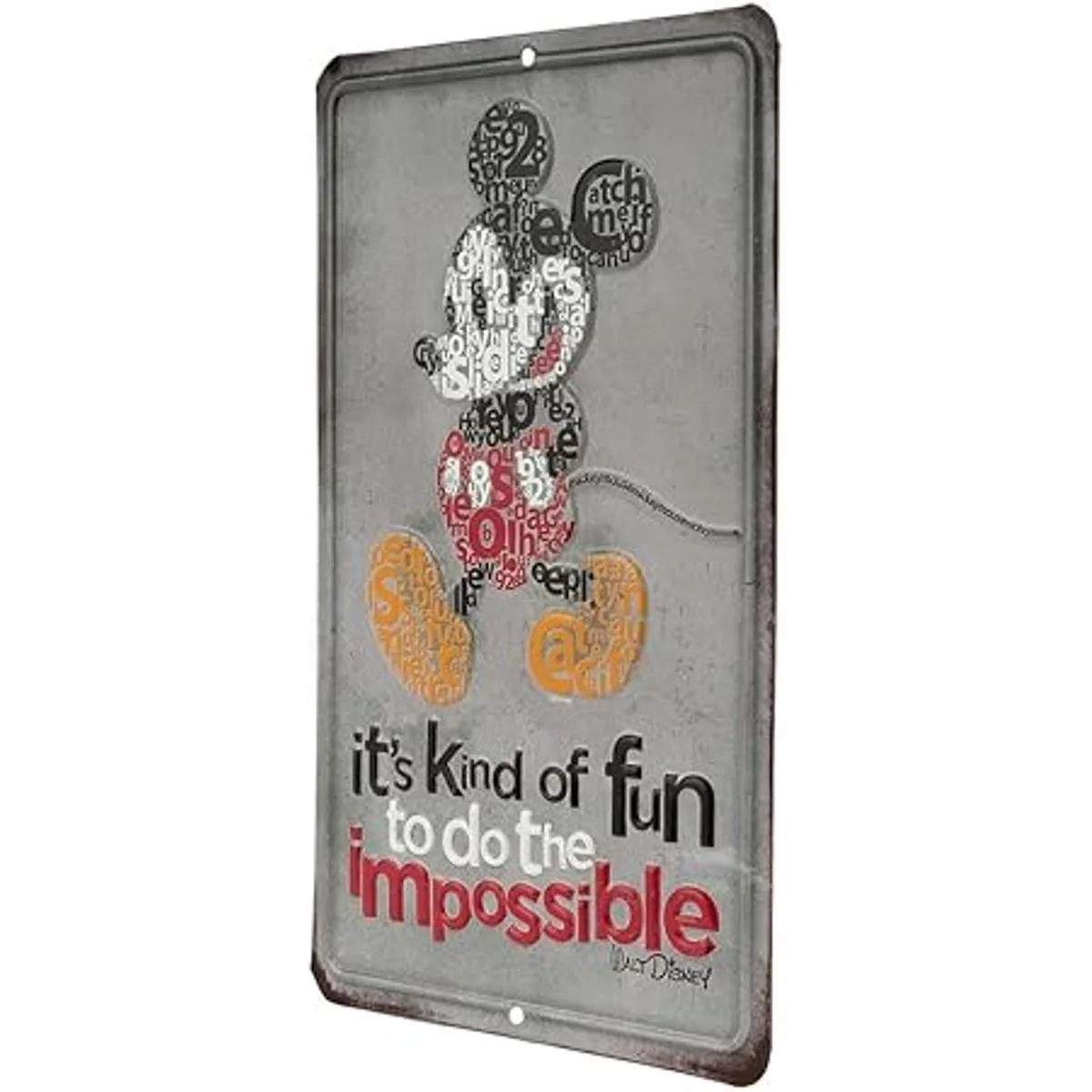 Open Road Brands Disney Mickey Mouse Do The Impossible Letrero de metal en relieve, diseño vintage de Mickey Mouse con cita inspiradora de Walt Disney