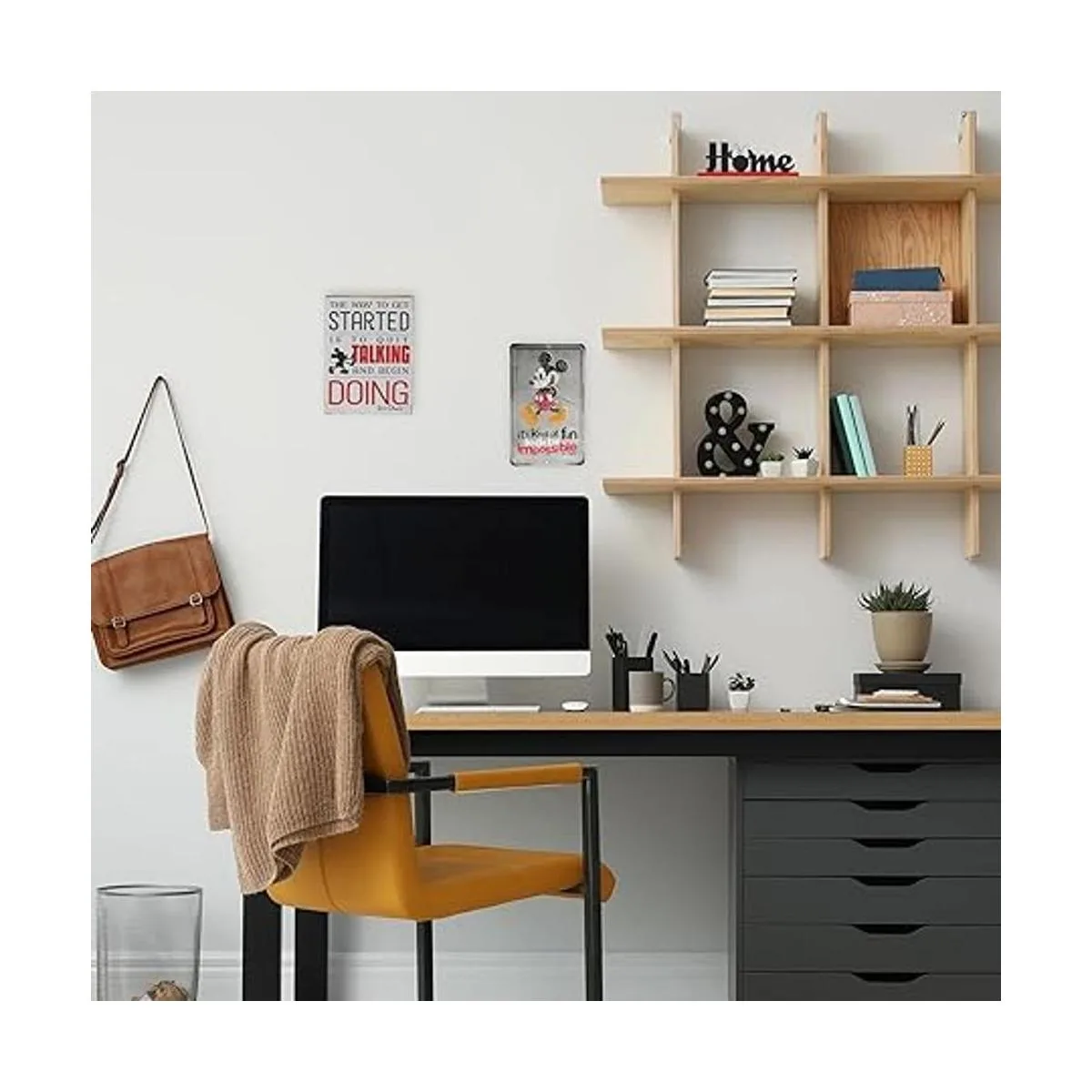 Divertido letrero vintage: con un acabado retro desgastado y una paleta de colores tenue, esta decoración de pared será como en casa entre tus coleccionables vintage de Disney.