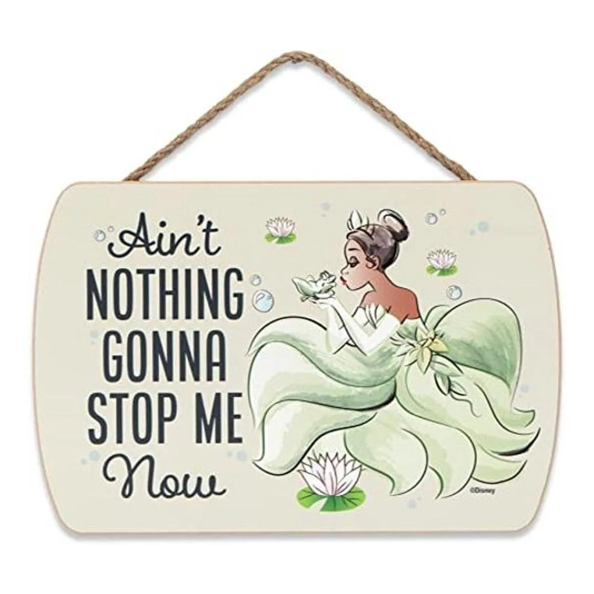 Open Road Brands Disney Princess and The Frog Tiana Decoración de pared de madera colgante Aint Nothing Gonna Stop Me Now Divertido letrero inspirador de Tiana