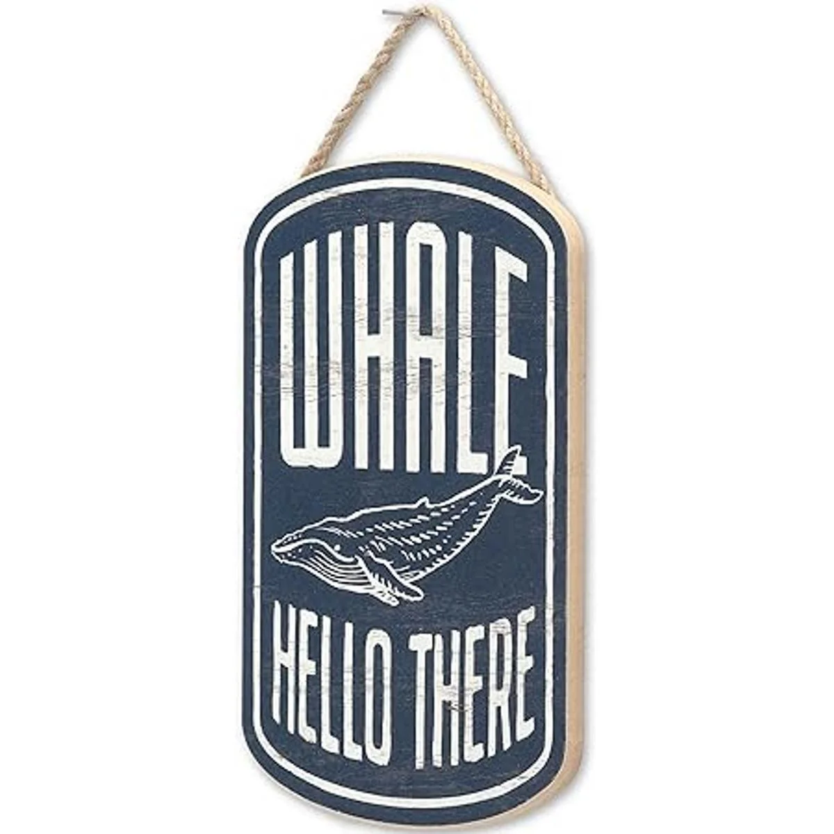 Open Road Brands Letrero colgante de Whale Hello There Divertida decoración de pared de playa de madera para entrada, sala de estar o baño
