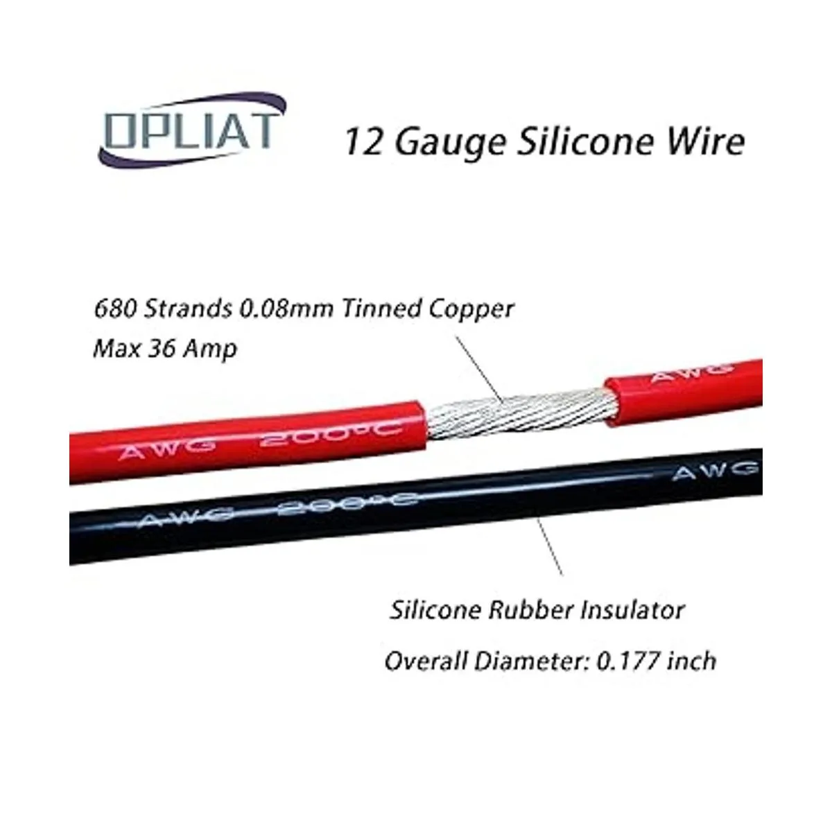 OPLIAT Cable de calibre 12 Rojo de 25 pies negro de 25 piesCable de silicona de alta temperatura 200 grados C Cable de cobre estañado trenzado ultra flexible de 12 AWG para cable de batería, automóvil, inversor, automóvil a control remoto, panel solar