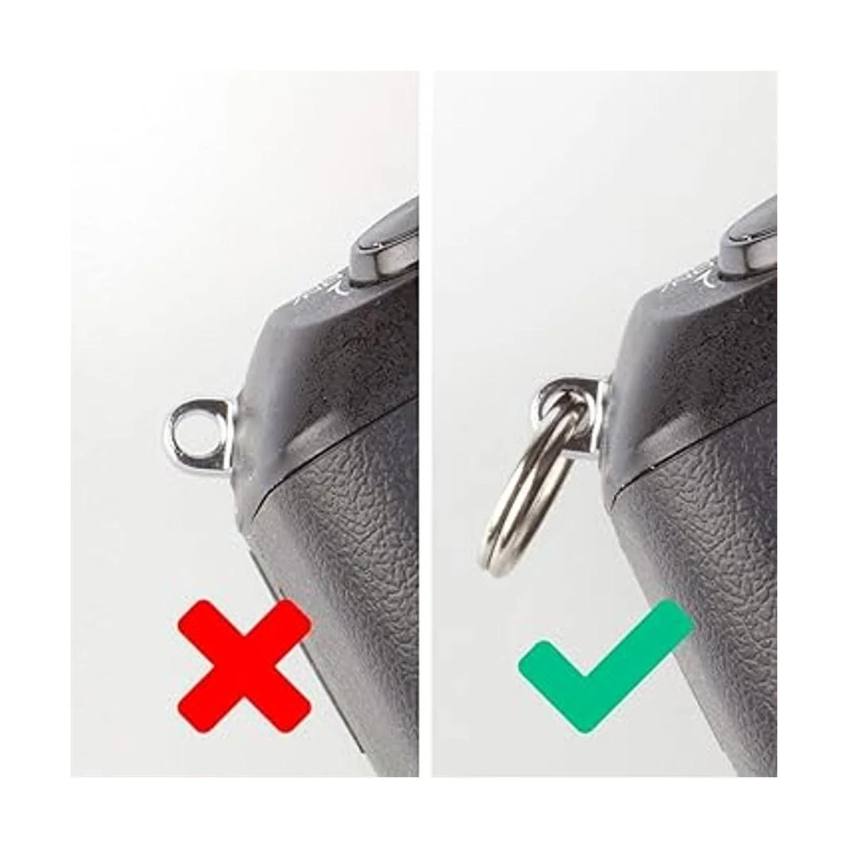 Fácil de acoplar con un resistente mini QD de 0.4 in con 1. Bucles de cable de 0.197 in Nota: si tu cámara tiene lengetas diseñadas para anillos divididos, recomendamos fijar un anillo dividido para evitar que los bordes afilados o rebabas corten el cordón