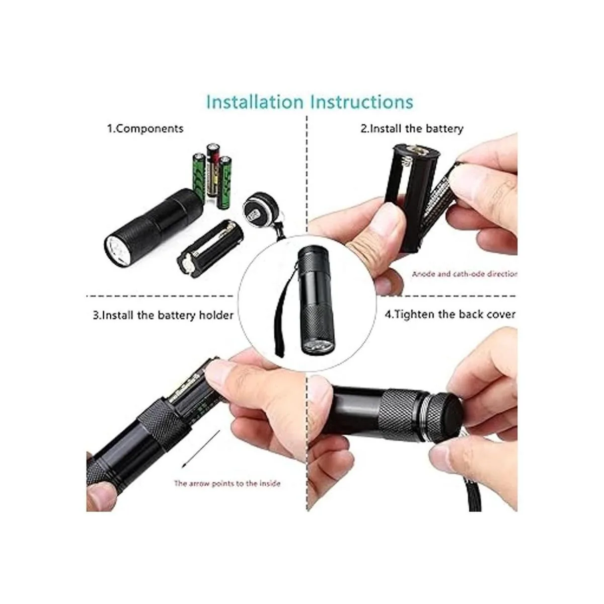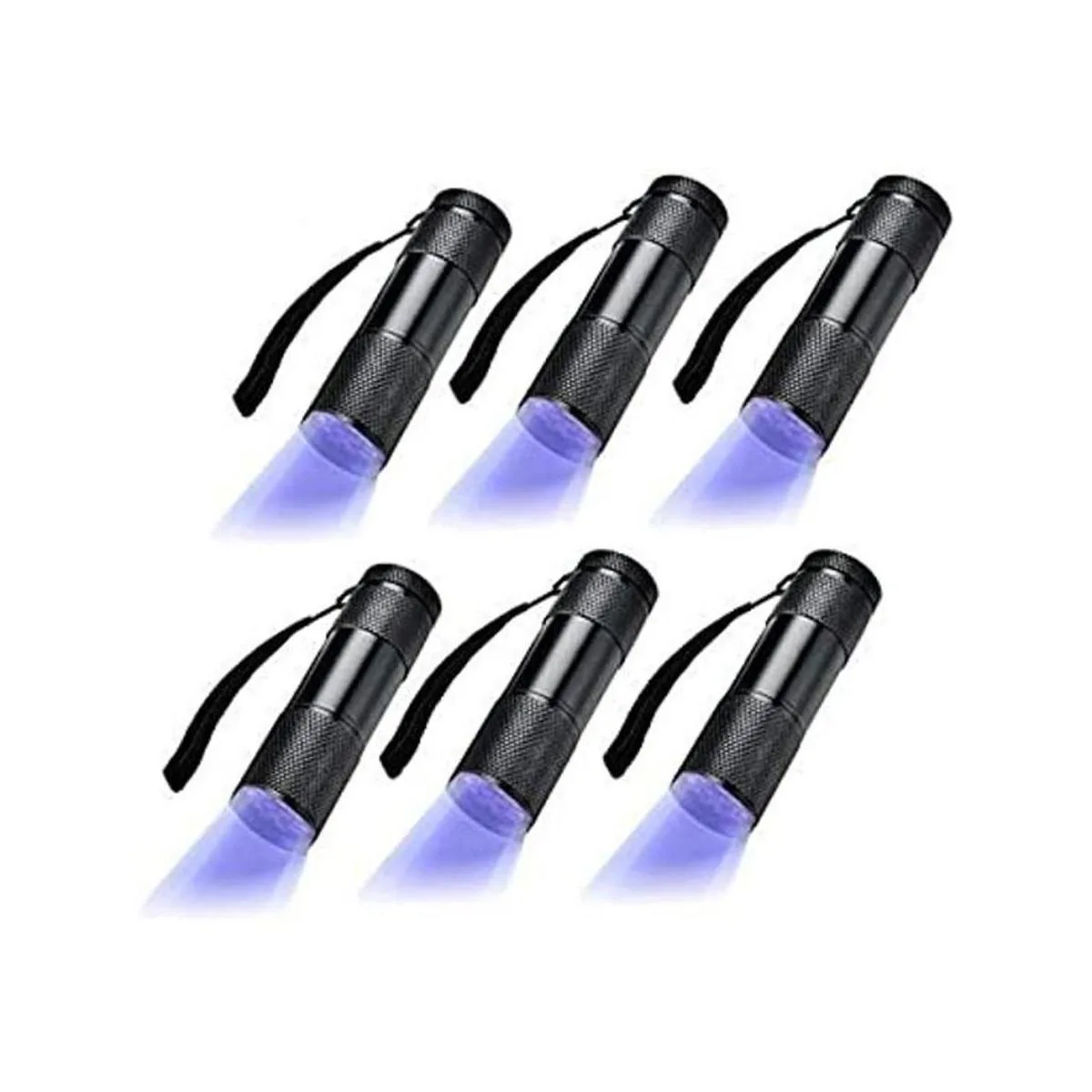 Optimal Shop Paquete de 6 linterna UV Blacklight 9 LED linterna al aire libre, etc paquete de 6