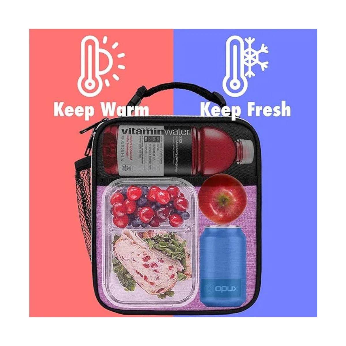 OPUX lonchera aislada de alta calidad Bolsa de almuerzo escolar suave hermética para niños y niñas Durable y reutilizable como lonchera de trabajo para adultos, hombres y mujeres, oficina, espacio de 6 latas, Heather Purple