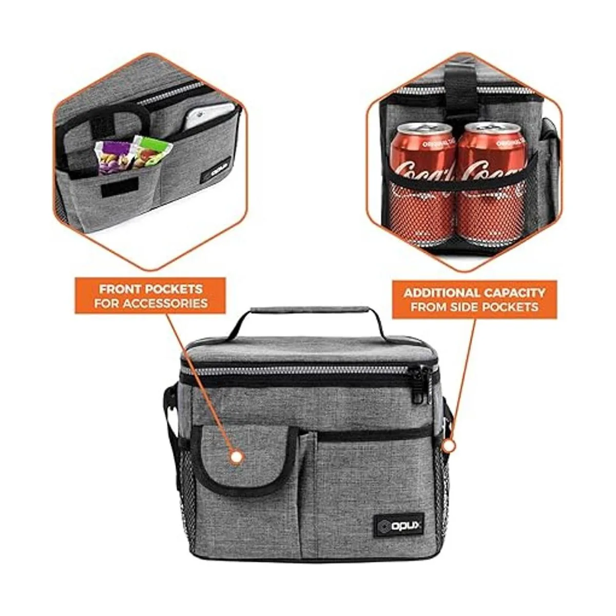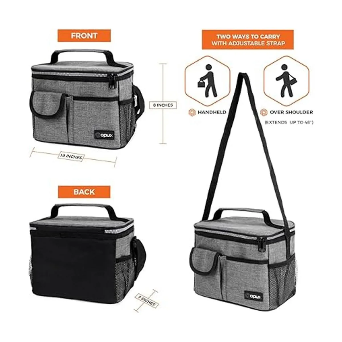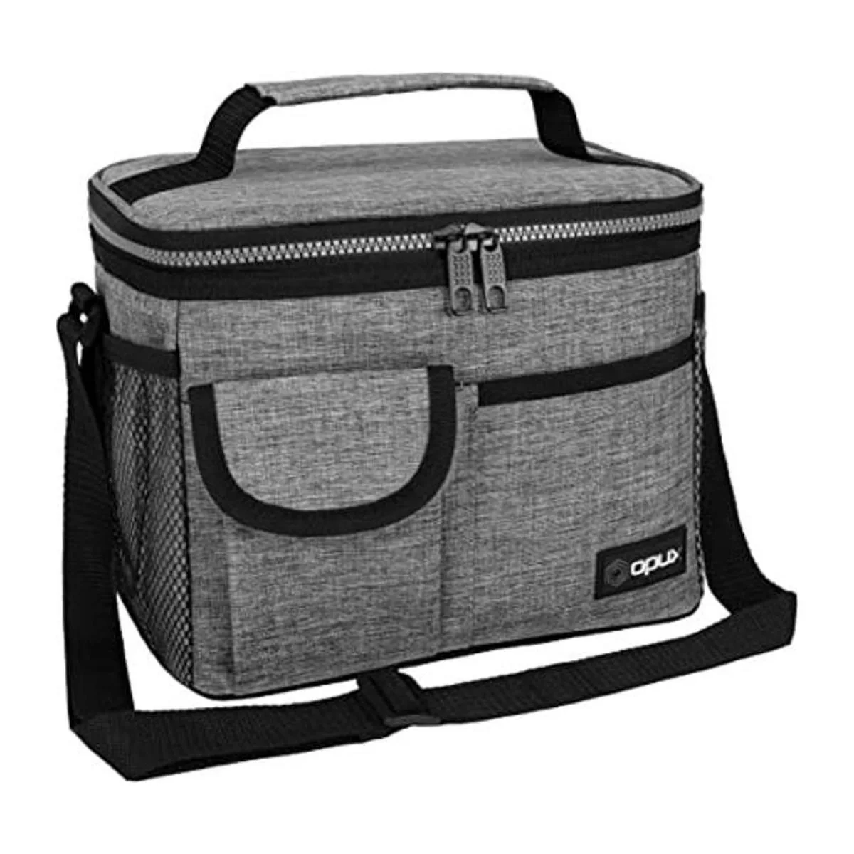 OPUX Lonchera aislada para adultos, hombres, mujeres, niños y niñas Bolsa térmica mediana a prueba de fugas para la escuela, trabajo, oficina lonchera con correa para el hombro, bolsillo., Estándar, Gris Heather
