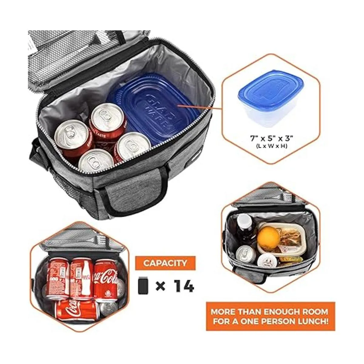 Esta lonchera de alta calidad con aislamiento, de capacidad media y con correa para el hombro y bolsillos, a la cual le cabe fácilmente el almuerzo de más de 1 persona, y es ideal para el envío del lunch al trabajo o a la escuela de hombres adultos, mujeres o niños. Su práctico tamaño hace que sea una opción versátil para empacar el lunch para largos viajes por carretera en automóvil.