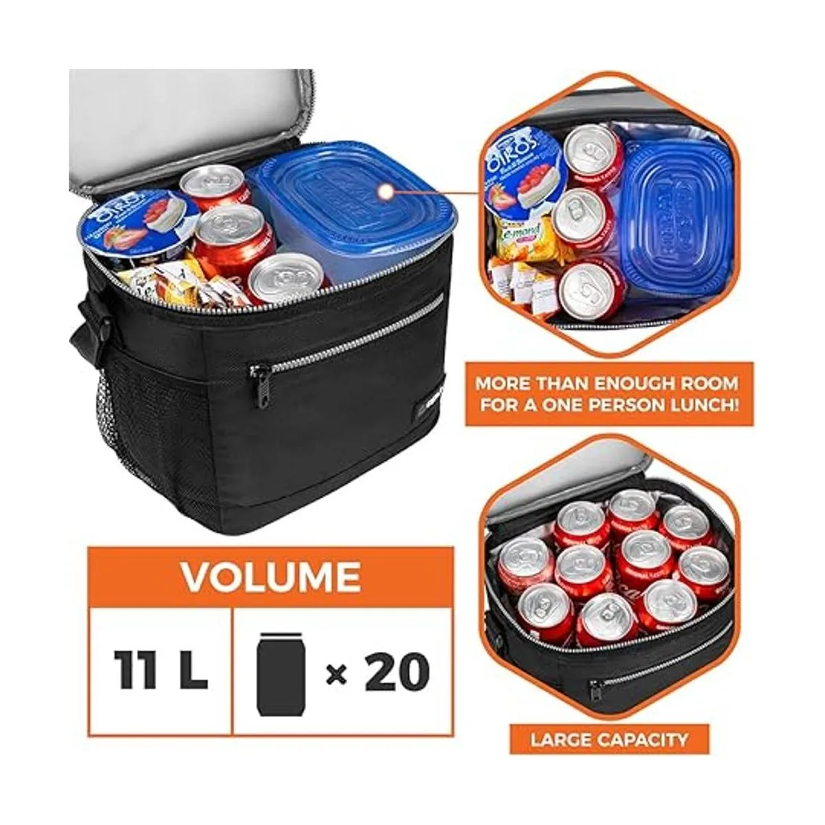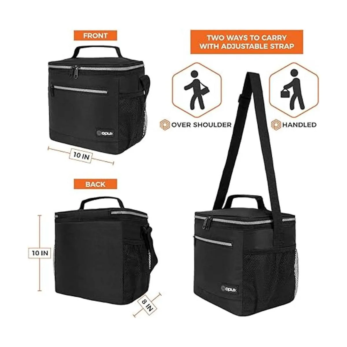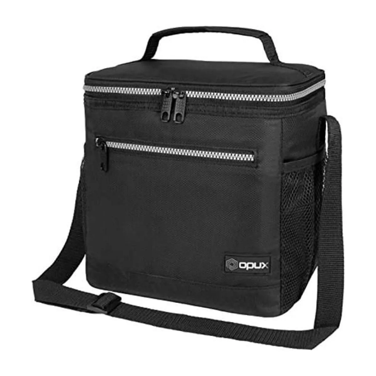 OPUX Lonchera grande aislada para hombres y mujeres, lonchera térmica a prueba de fugas para el trabajo, bolsa reutilizable para el almuerzo, correa suave para el hombro, bolsillos, 18 latas, 10 L, negro