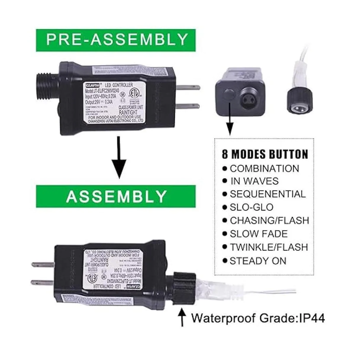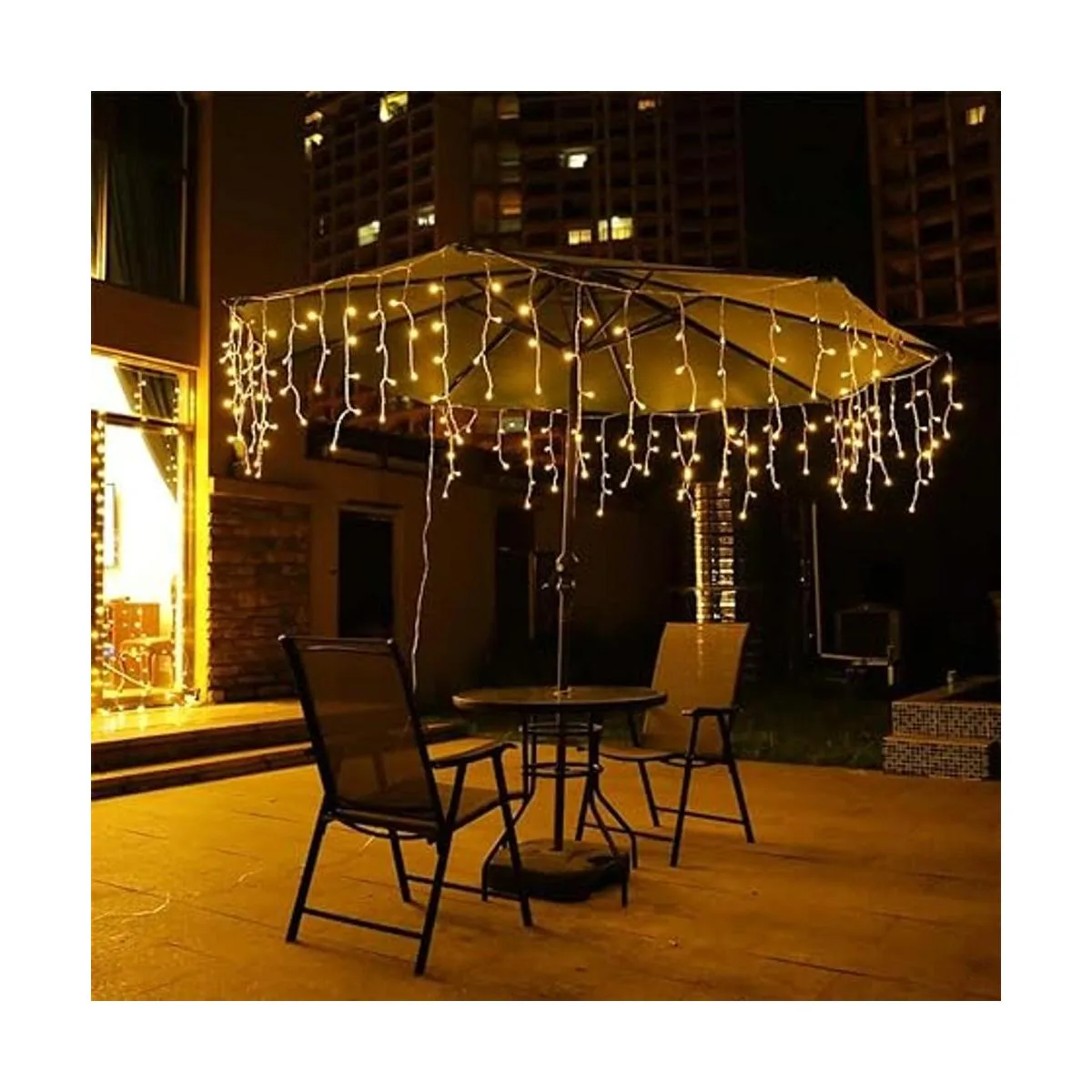 Seguro de usar y conectable: luces de carámbano que funcionan con voltaje de salida de 30 V CC, tiene 2 excelentes disipación de calor y es seguro al tacto. Salida estándar de Estados Unidos. Con conector final, se puede extender a un máximo de 5 cadenas.