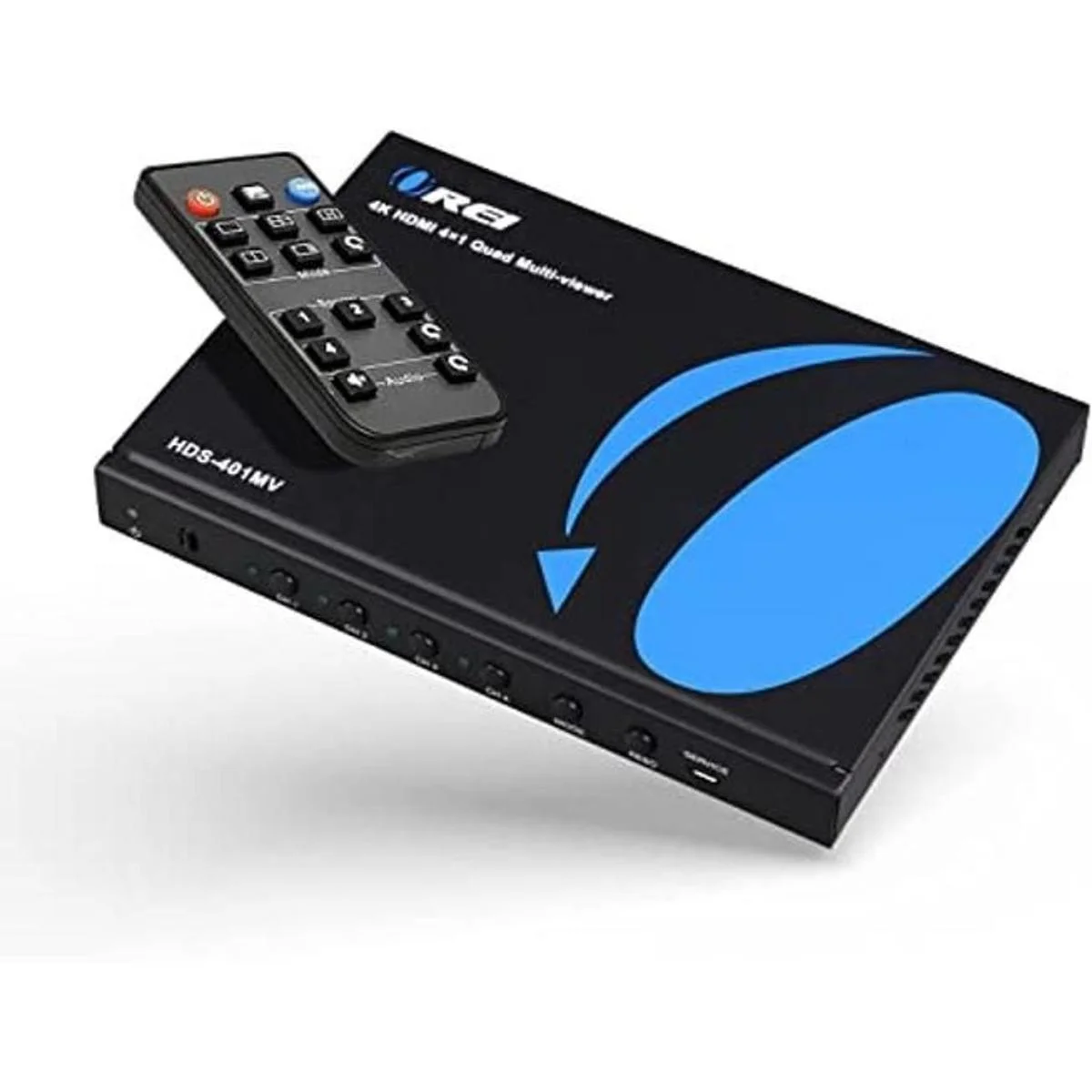 Orei Visor HDMI Quad Multi 4 en 1, conmutador HDMI de 4 puertos, conmutador sin costuras y soporte remoto IR 4K 30Hz 1080P para PS4PCDVDcámara de seguridad, interruptor HDMI Salida VGA HDS401MV