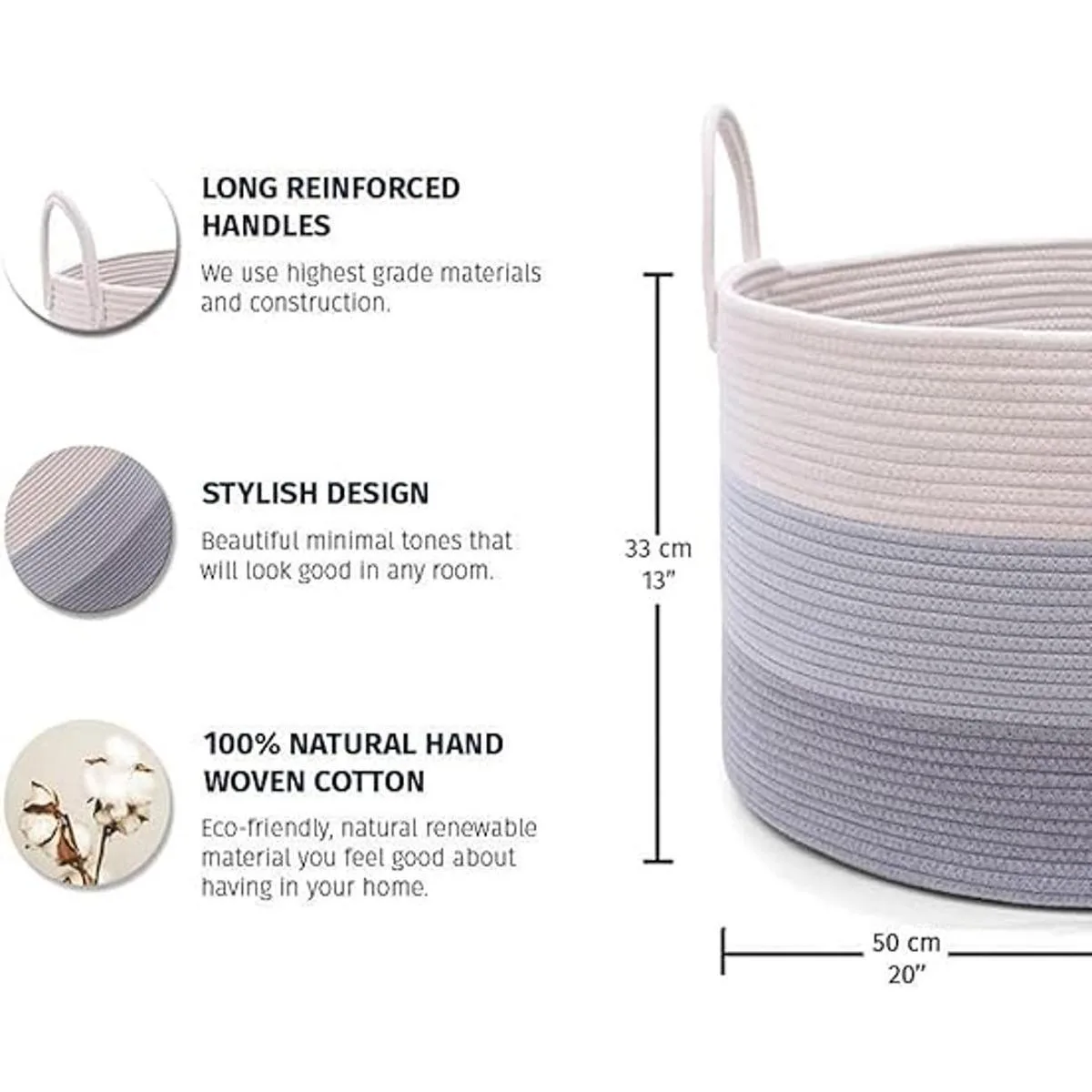 OrganiHaus Cesta de almacenamiento de cuerda extra grande para organizar mantas, cestas tejidas para sala de estar, cesta de lavandería, estilo bohemio, cesta de juguetes, de 20 x 13 pulgadas, gris.