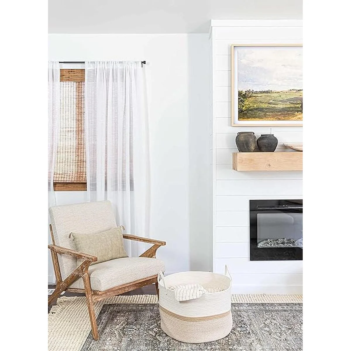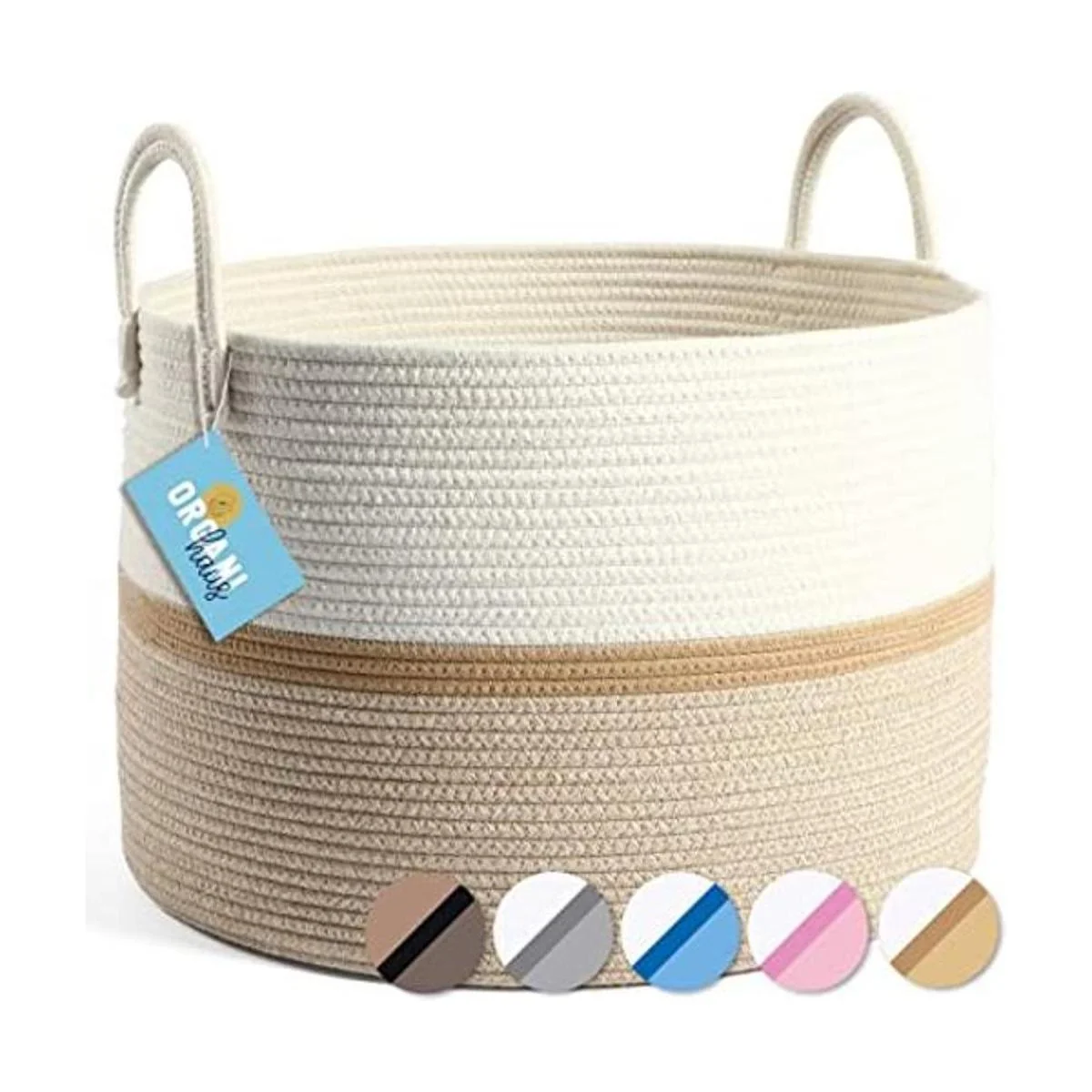 OrganiHaus Cesta de cuerda extra grande Cesta de manta Bonita cesta de lavandería Cesta de juguetes Cesta de almacenamiento tejida para zapatos Cesta de ropa para bebé Cesta de yoga Cesta ancha de miel 20 x 13 pulgadas