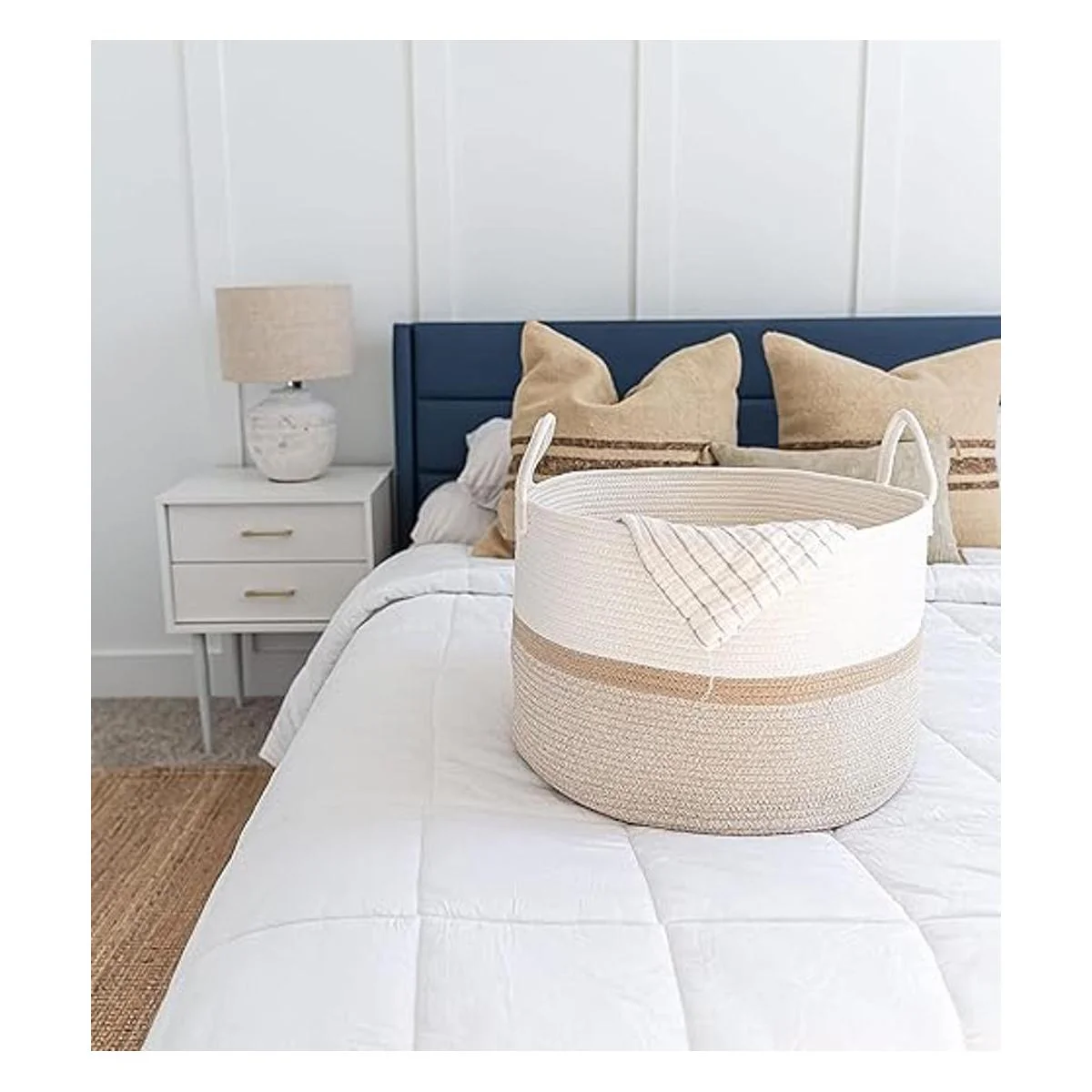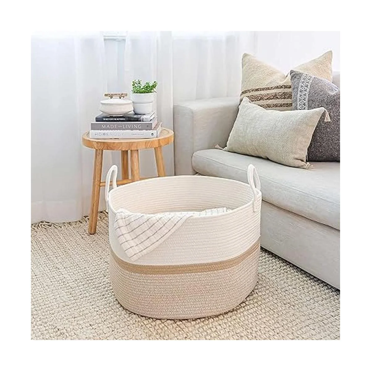 Ideal para cualquier habitación, incluyendo cuarto de bebé, lavandería, dormitorio, sala de estar y cocina. Utilizamos colores especiales que combinan con casi cualquier decoración, esquema de color, período o estilo. Esta cesta grande hace un bonito enfoque visual minimalista y discreto para cualquier espacio. También se utilizan en muchas empresas y oficinas
