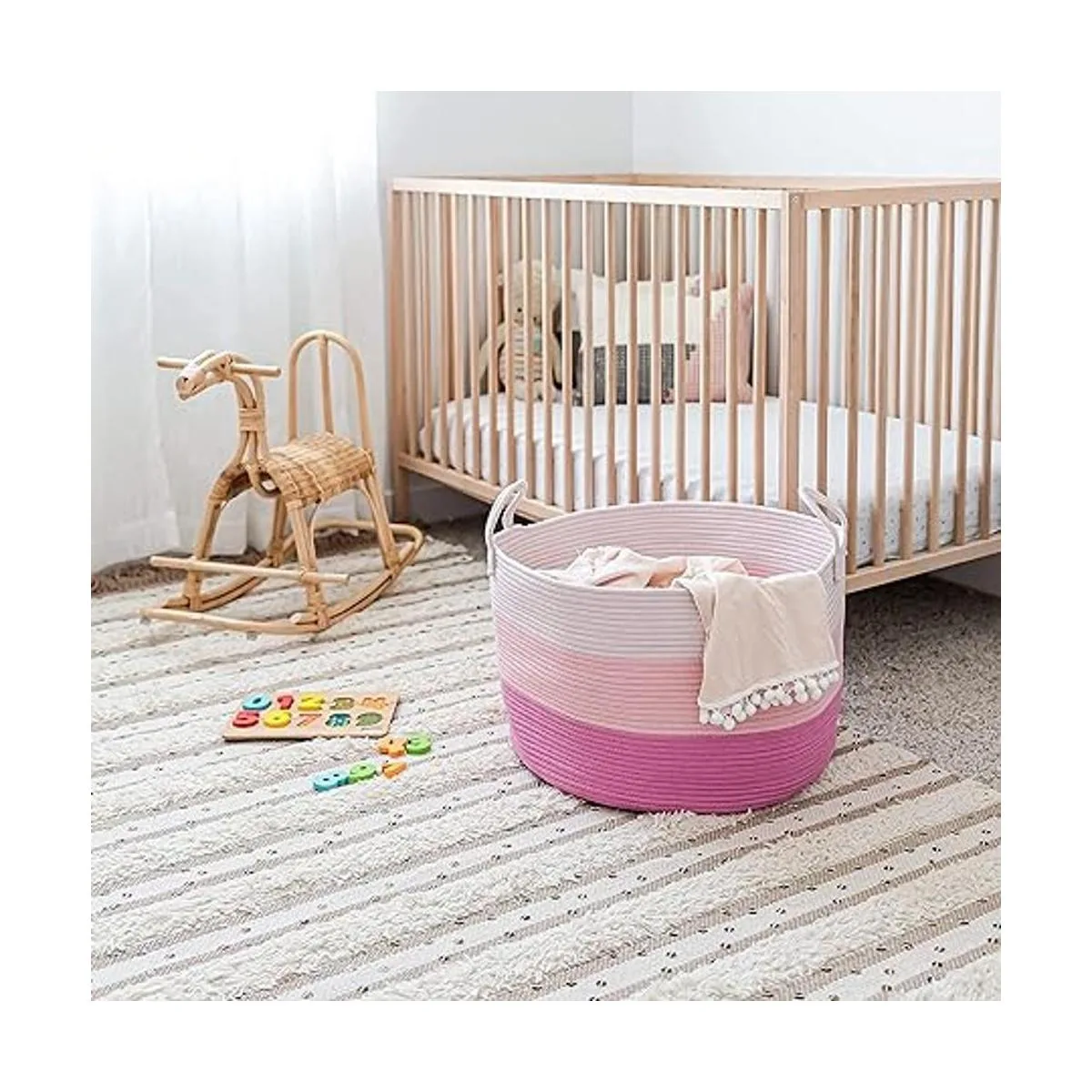 Cesta tejida a mano de algodón 100 natural, la cesta Joanna es la cesta de almacenamiento extra grande XXL que te encantará usar Este es el complemento perfecto para la guardería de tu hijo pequeño