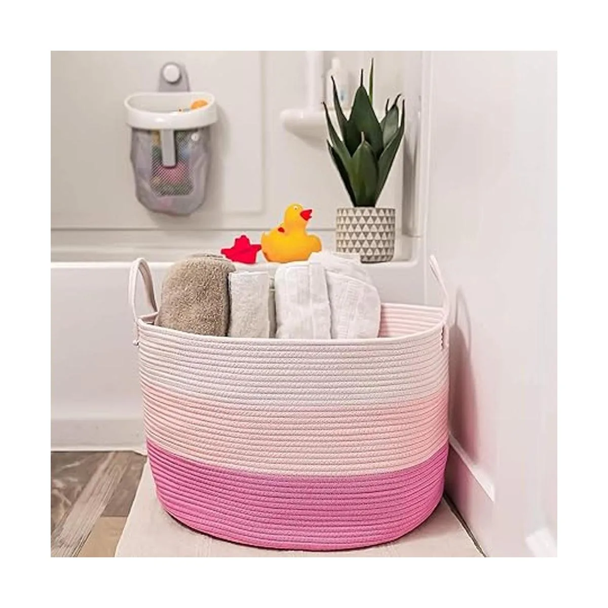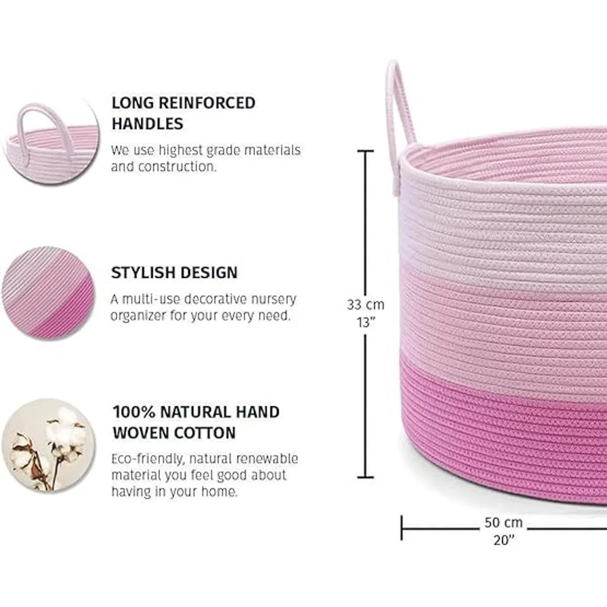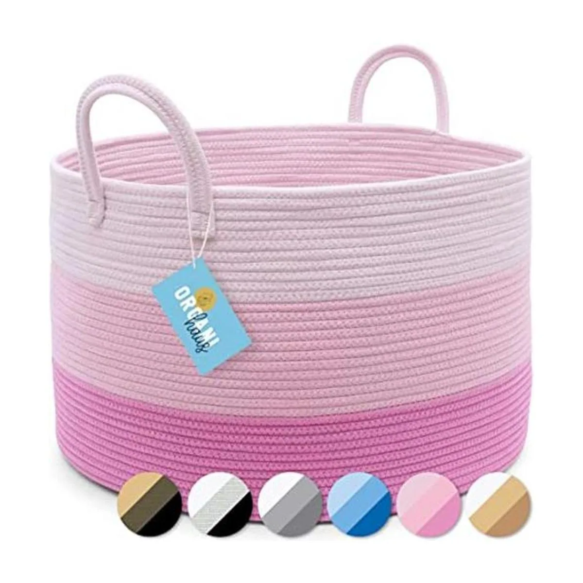 OrganiHaus Cesta de lavandería rosa; Almacenamiento de juguetes para perros; Contenedores de almacenamiento rosados; Cesta de cuerda grande para organizar cestas tejidas para almacenamiento y cesta de manta para sala de estar; Cesta de bebé niña; Cesta de juguetes de 20 x 13 pulgadas