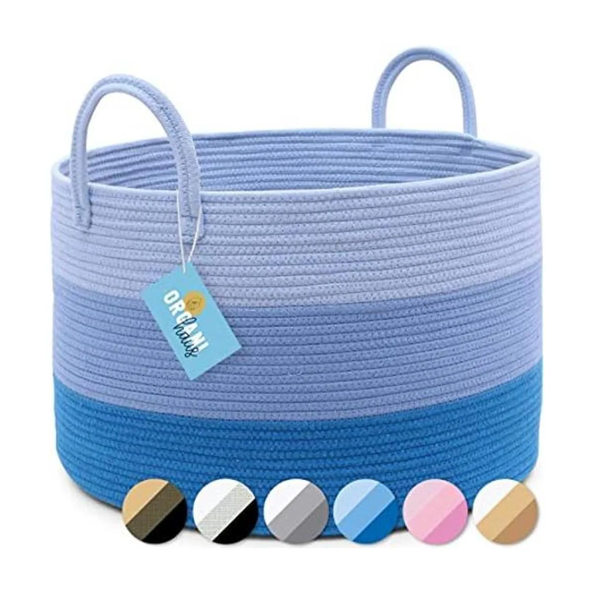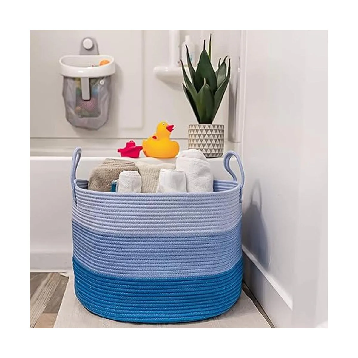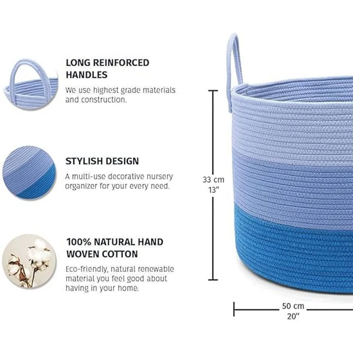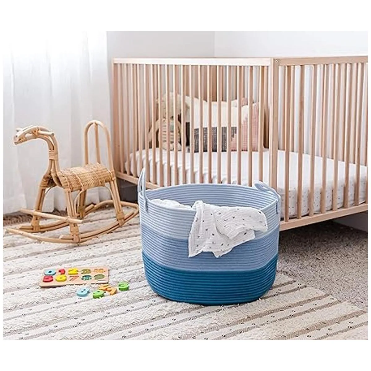 OrganiHaus Cestas de almacenamiento para bebé de cuerda de algodón para organizar; Cestas tejidas azules para almacenamiento; Cesta de cuerda y cesta de manta para sala de estar; Cesta de lavandería para almacenamiento de mantas; Cesta de juguetes de guardería de 20 x 13 pulgadas