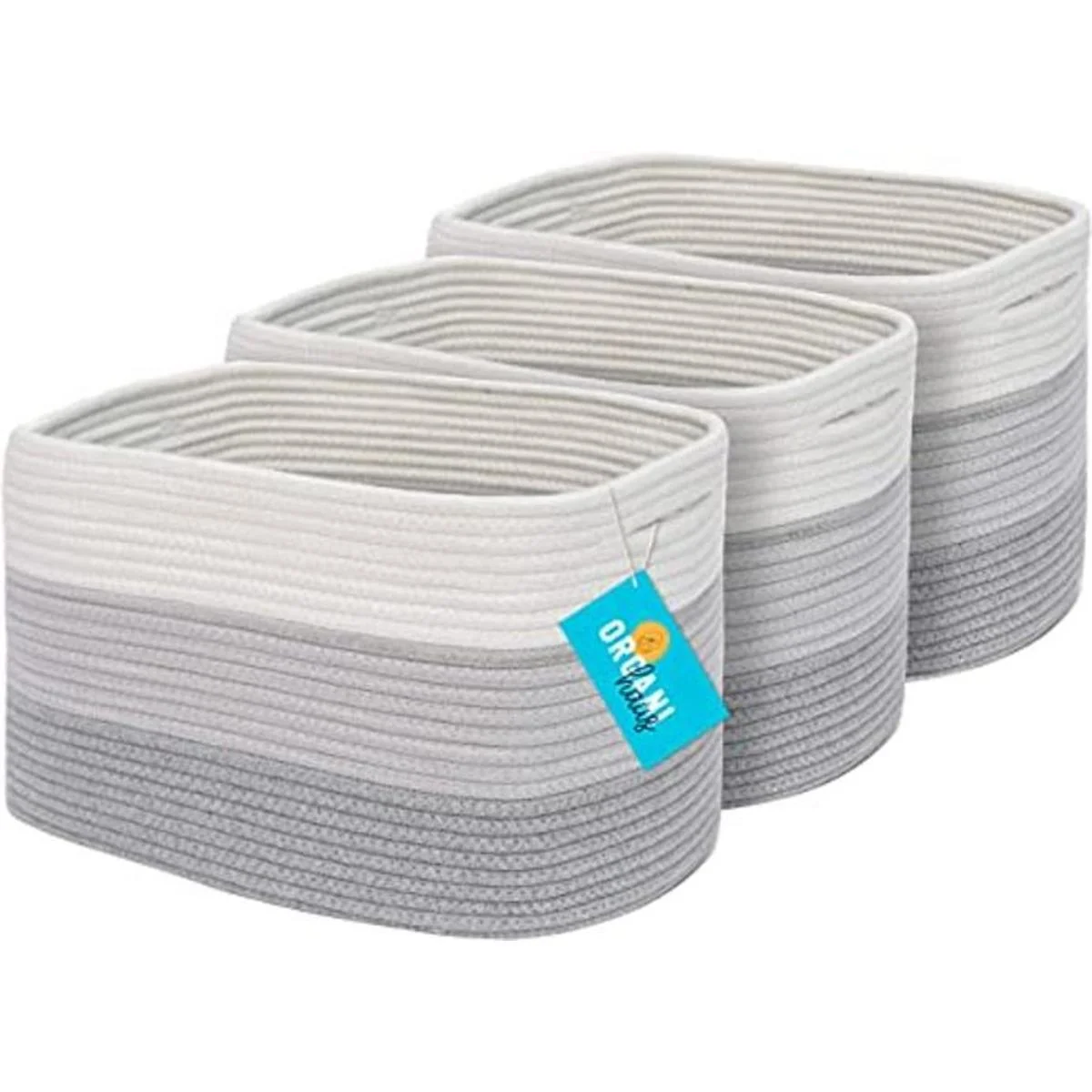 OrganiHaus Juego de 3 canastas de cuerda de algodón, para estante