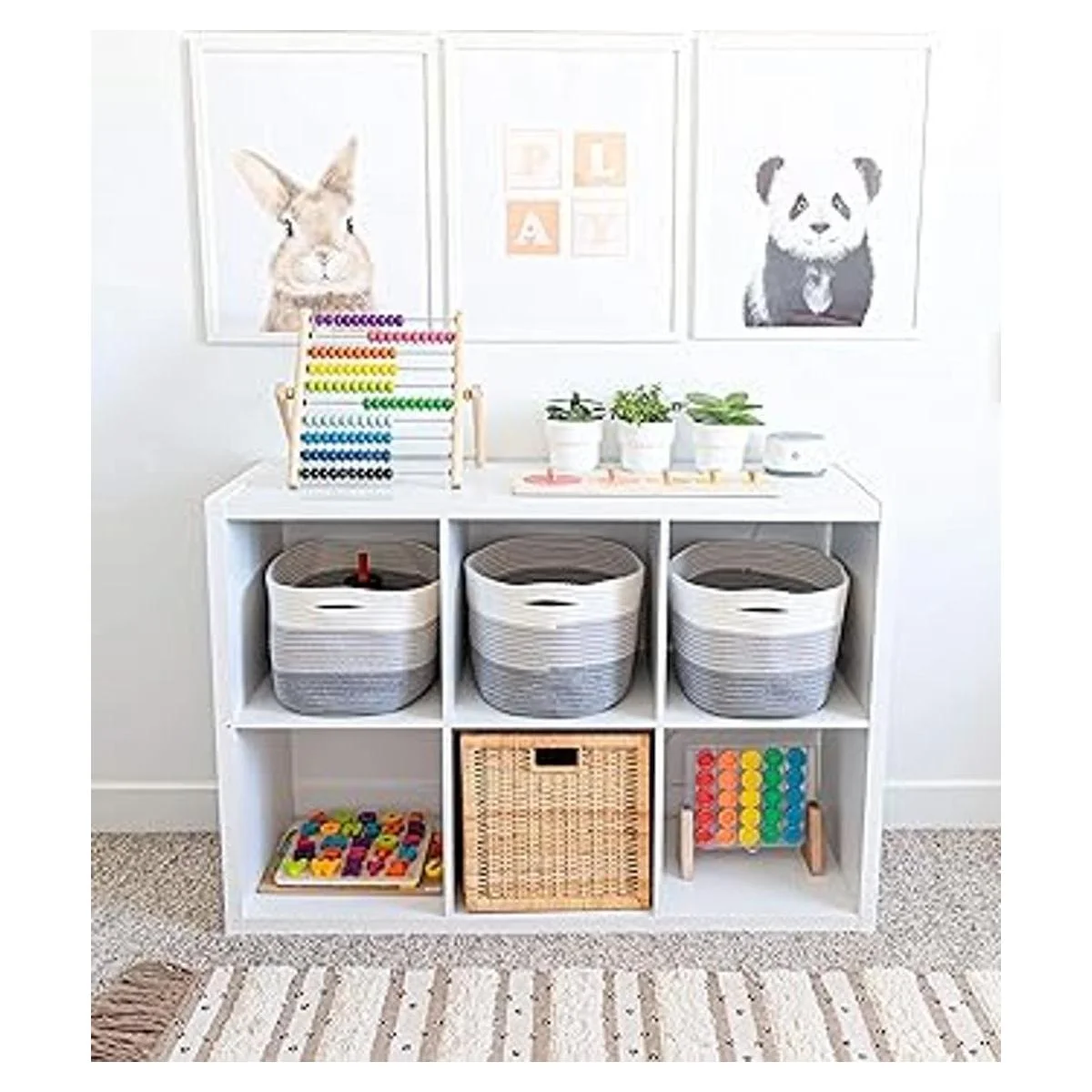 Canastas de almacenamiento multiusos: estas canastas de cuerda para almacenamiento de 15 x 10 x 9 son ideales para mantener tu vida diaria en el hogar más organizada y proporcionan un montón de espacio de almacenamiento compacto para arte y manualidades, juguetes de niños o accesorios del cuarto del bebé.