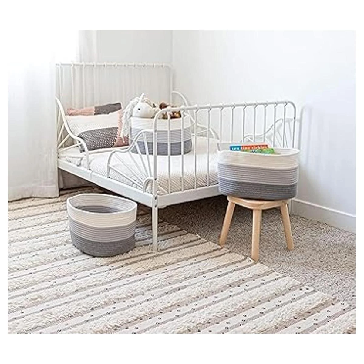 Elegante diseño de cuerda de algodón enrollada: estas canastas de cuerda enrollada combinan un toque vintage con un toque moderno, están hechas de algodón tejido apretado, que es fuerte, duradero y resistente a la abrasión, para almacenamiento en interiores de larga duración, exhibición u organización.