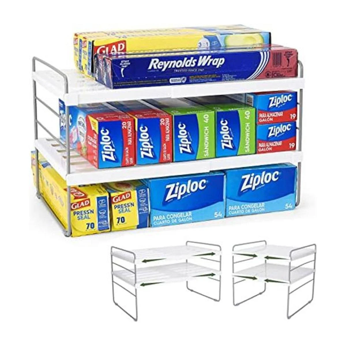 Organización y almacenamiento de despensa para cocina, estante organizador de caja de cocina expandible, organizador de papel de aluminio para gabinete y encimera, estante de almacenamiento ajustable de altura y ancho 3 niveles de 9.8 a 15.6 pulgadas de largo