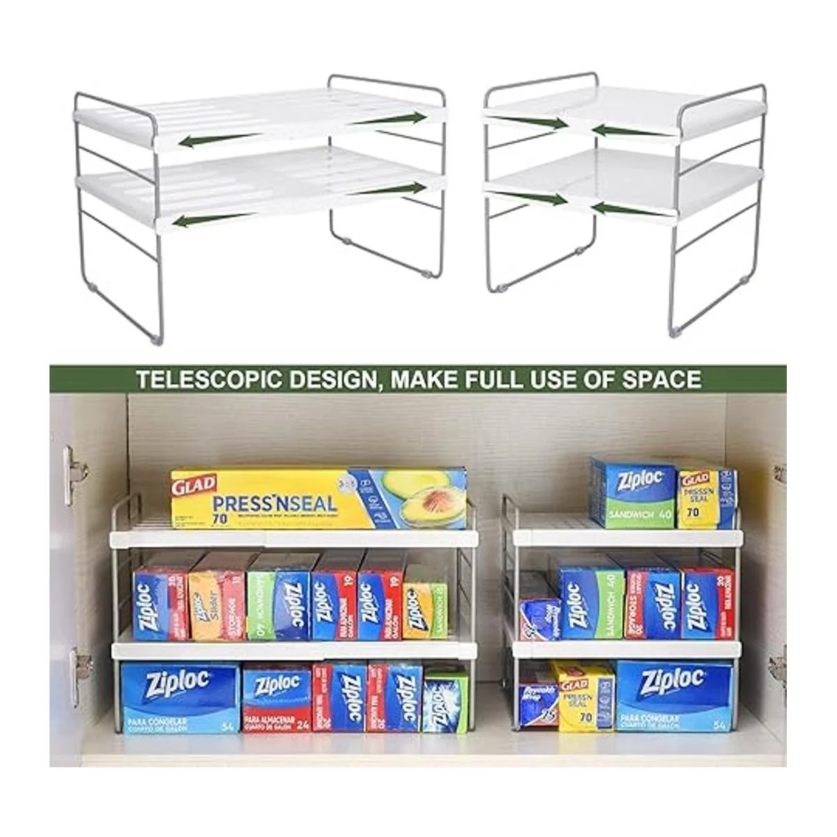 Diseño ajustable y ampliable: nuestro organizador expandible de papel de aluminio y plástico se puede extender de 9.8 a 15.6 pulgadas, y se puede ajustar a cuatro alturas diferentes 3.9 a 8.9 pulgadas para maximizar el área de almacenamiento y el espacio vertical, ajustable de forma flexible para satisfacer diferentes necesidades de almacenamiento.