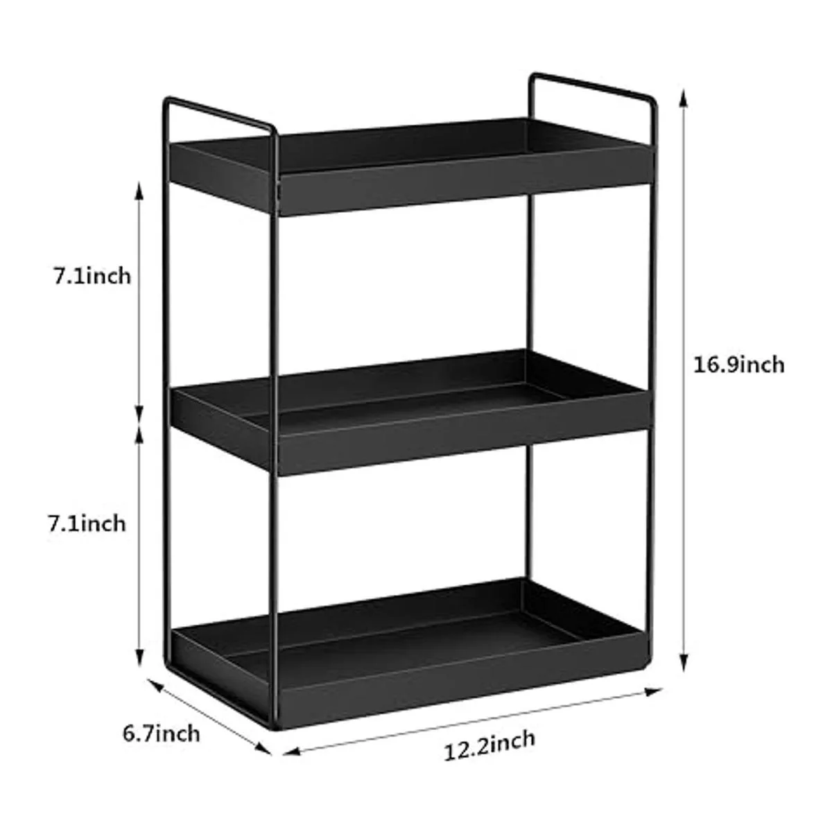 Organizador de 3 niveles para encimeras de baño, bandeja de tocador para cosméticos y maquillaje, estante de pie, color negro