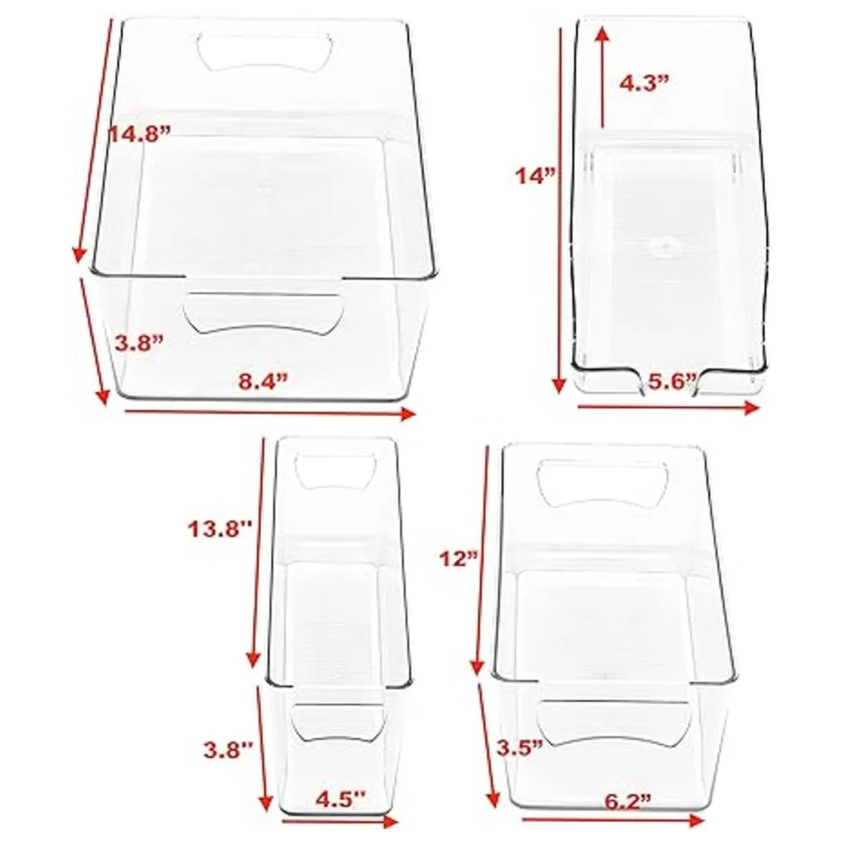 Dimensiones exteriores: 2 recipientes grandes de 14.6 in de largo x 8.3 in de ancho x 3.5 in de alto, 2 recipientes largos de 13.8 in de largo x 4.3 in de ancho x 3.5 in de alto, 1 dispensador de latas de 13.8 in de largo x 5.5 in de ancho x 3.9 in de alto, 1 recipiente mediano. 2.0 x 5.9 in. 0.1 in de ancho x 3.5 in de alto.