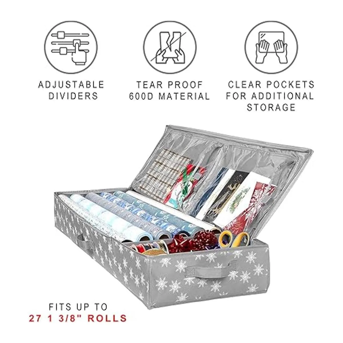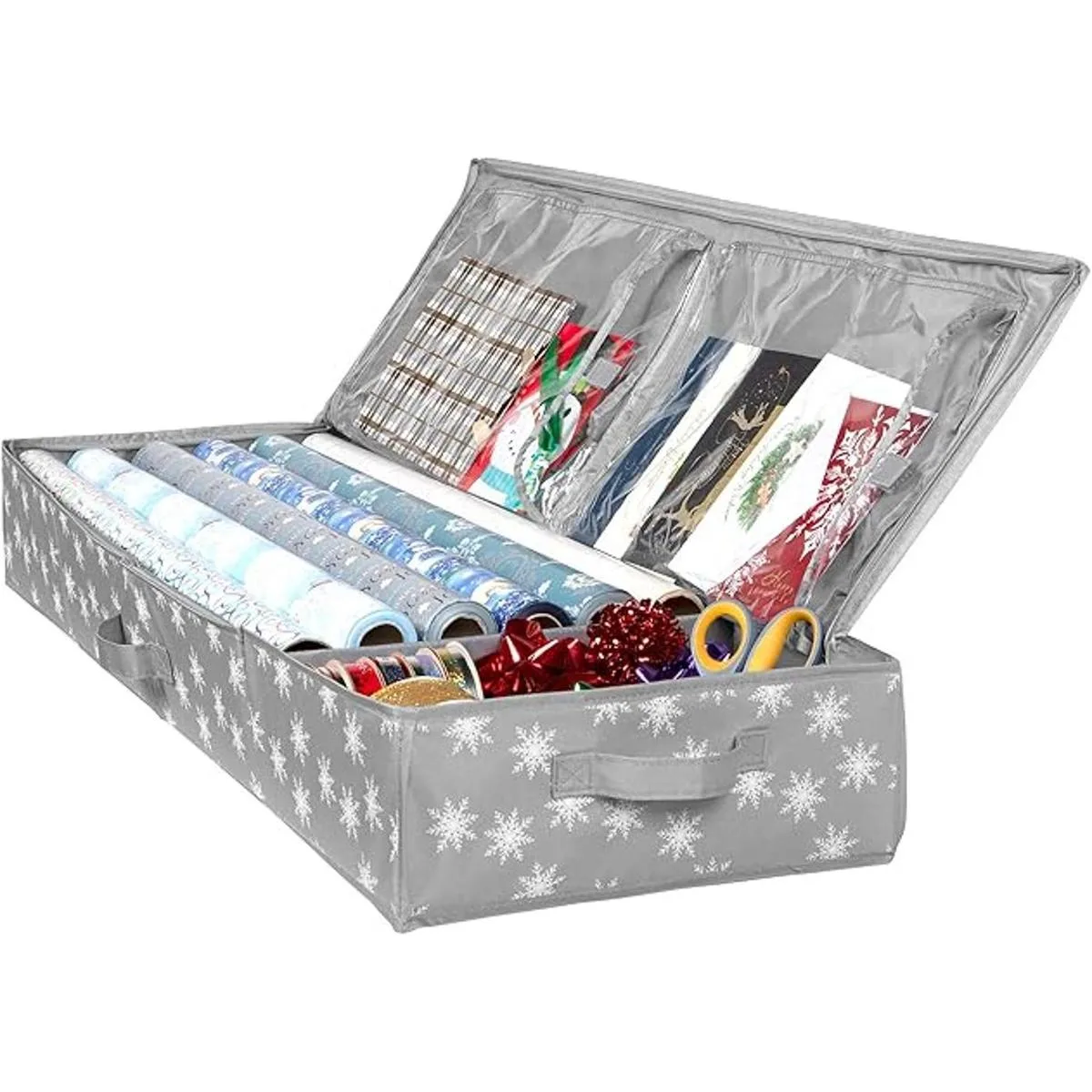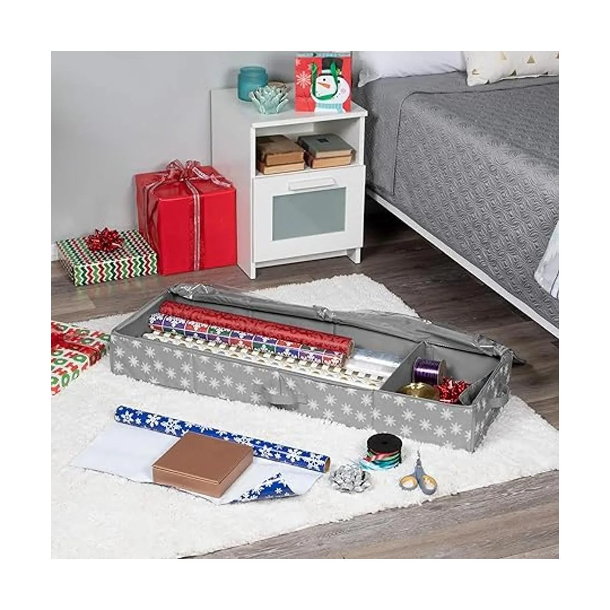 Organizador de almacenamiento de Navidad almacenamiento de papel de regalo y contenedor de almacenamiento debajo de la cama para bolsas de regalo, papel de regalo, cinta y lazos