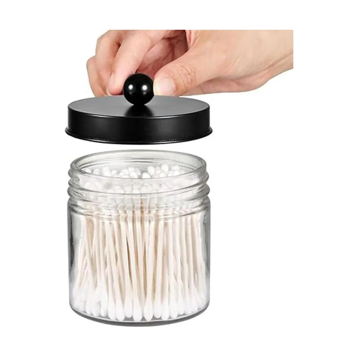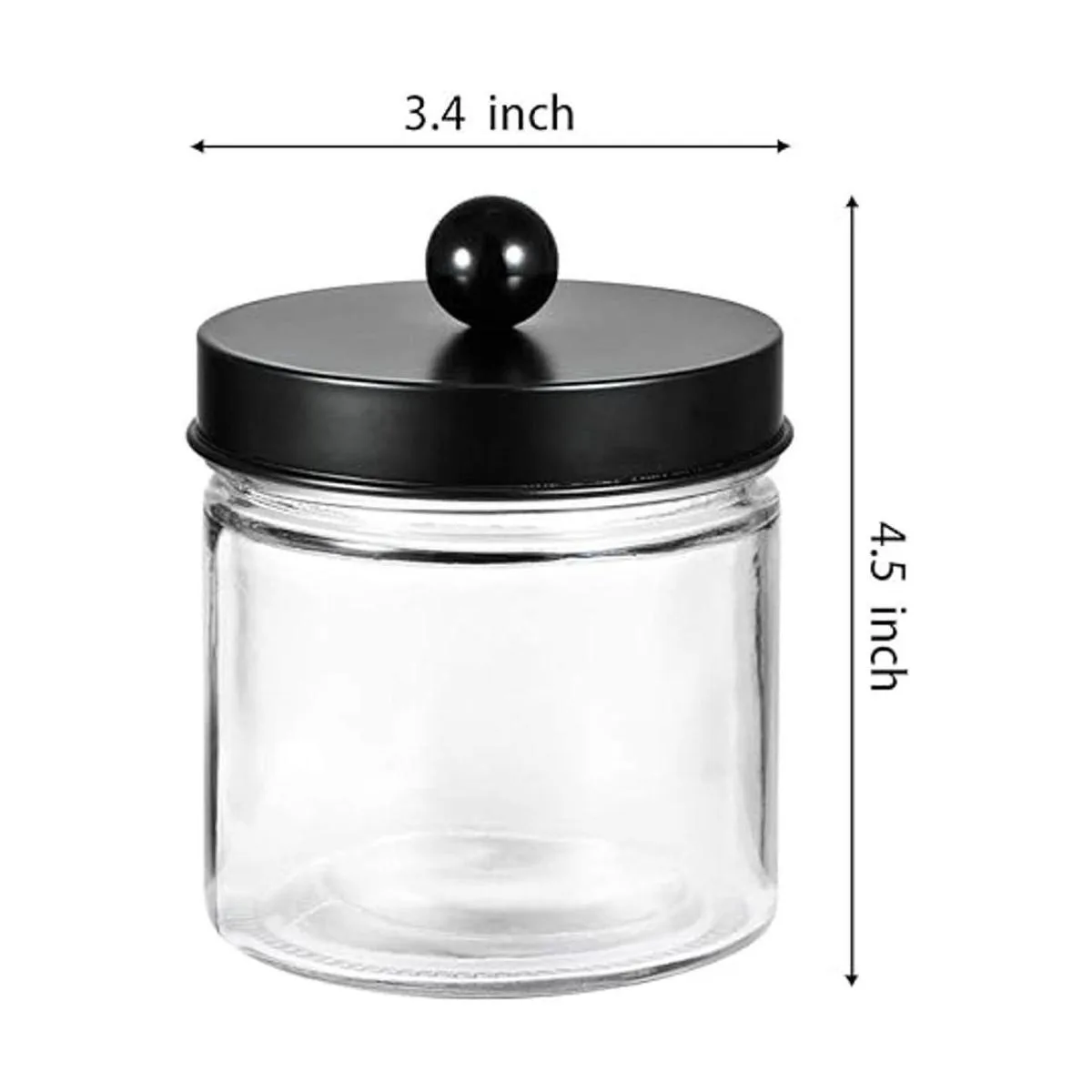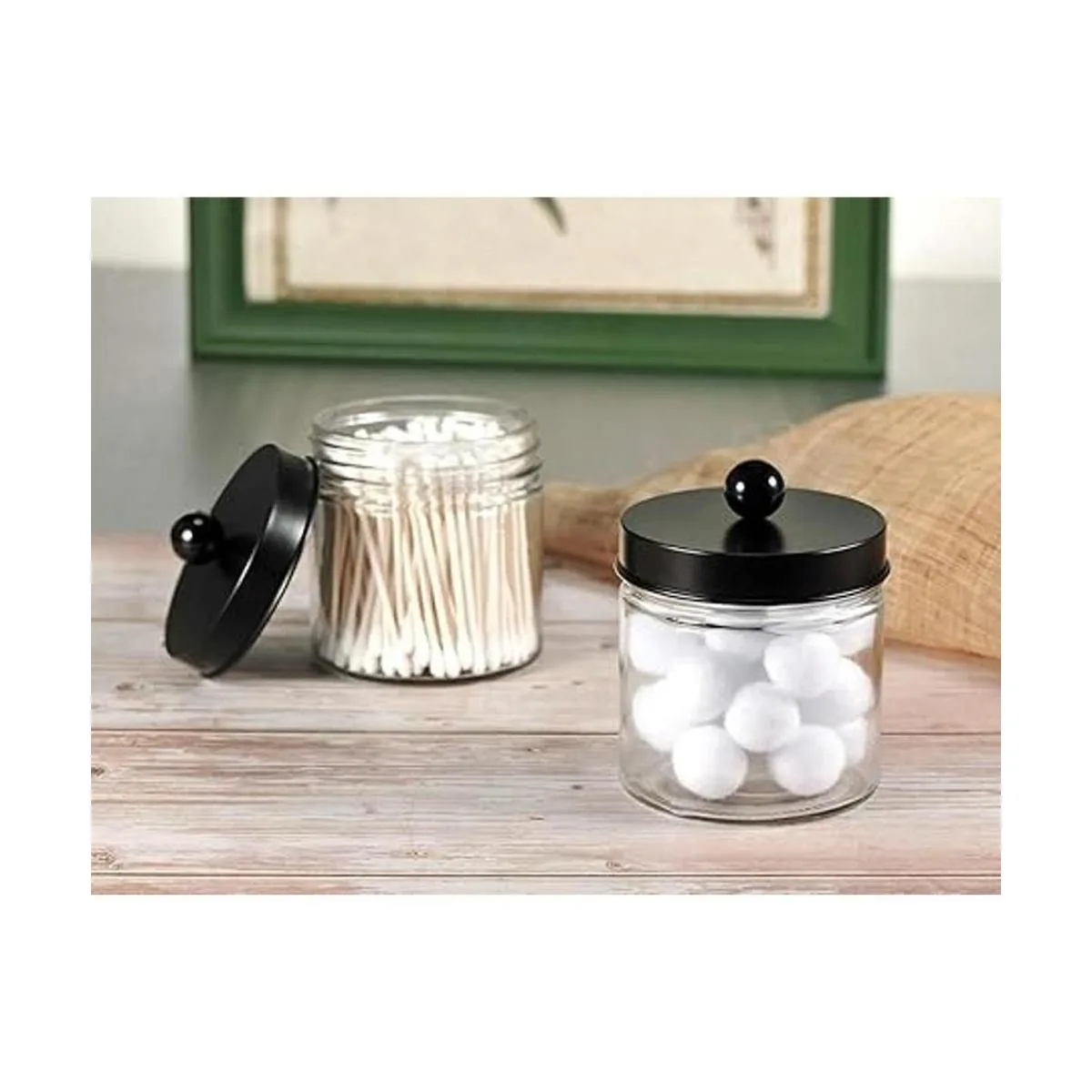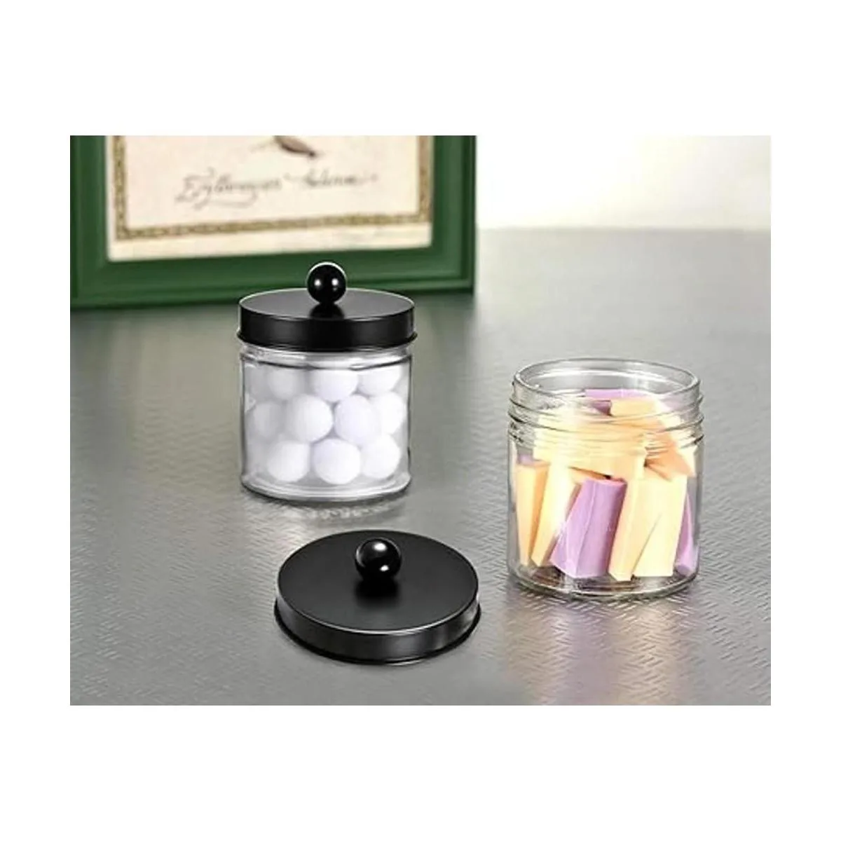 Organizador de almacenamiento de vidrio para tocador de baño, tarros de boticario para hisopos de algodón, redondos, bolas, Qtips, esponjas de maquillaje, hilo dental, sales de baño, paquete de 2, transparente negro