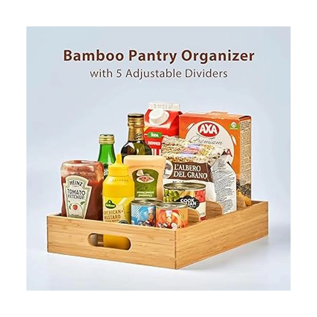 Organizador de armario de cocina para tapas de contenedores de almacenamiento de alimentos, con separadores ajustables, compatible con juegos de Tupperware Pyrex Rubbermaid, organizador de cajones de bambú, caja de almacenamiento en despensa, baño
