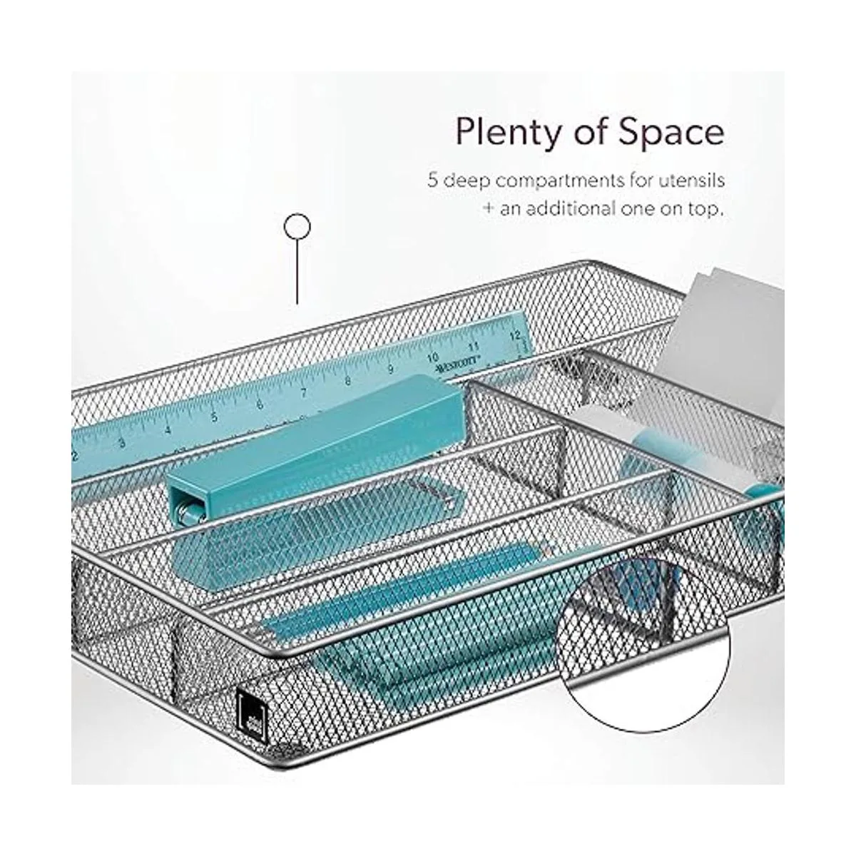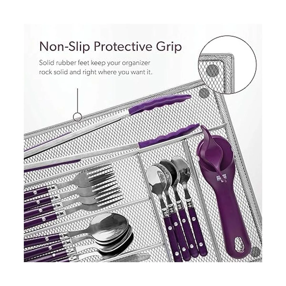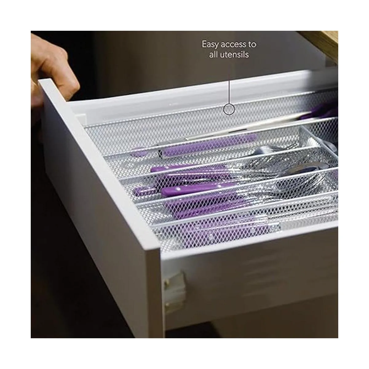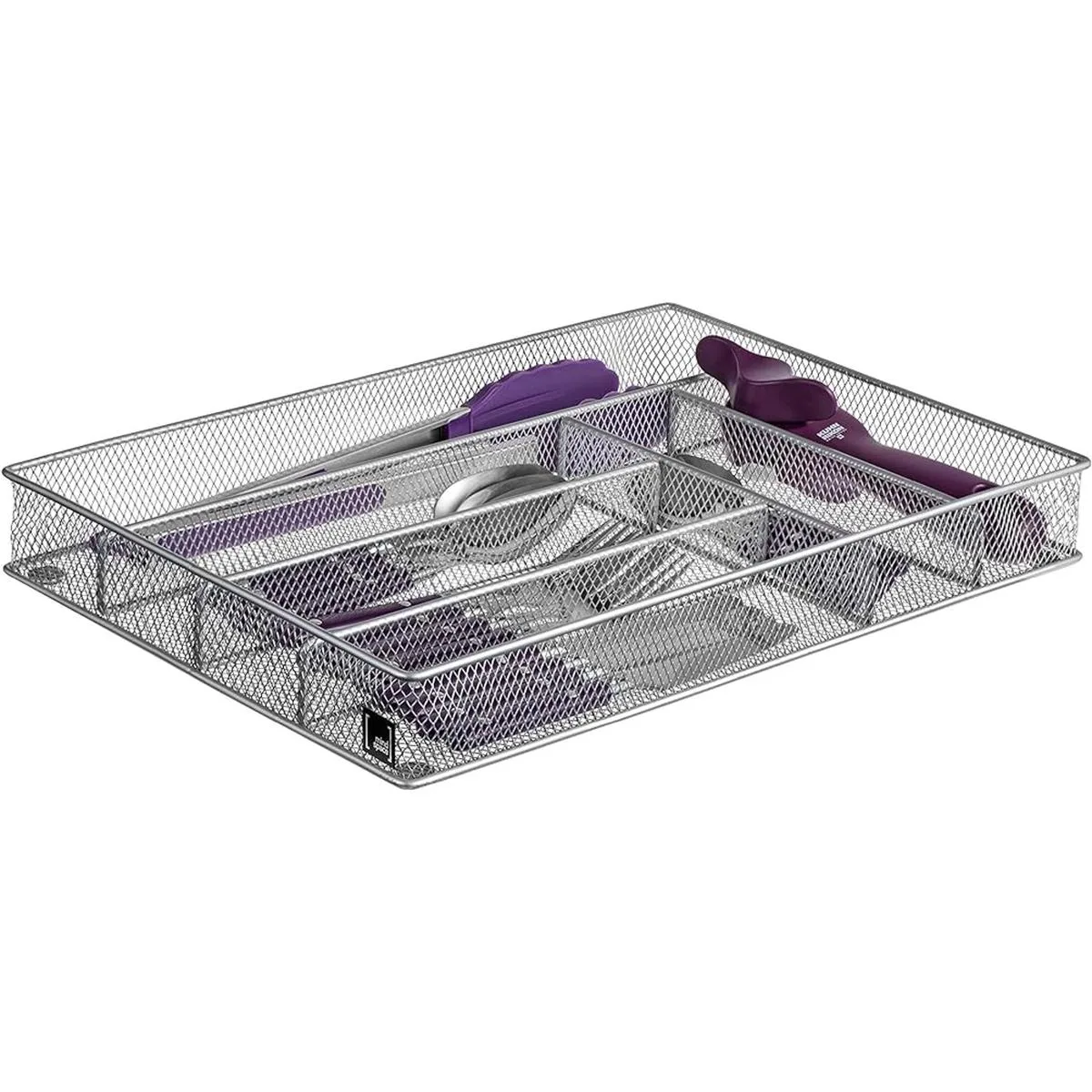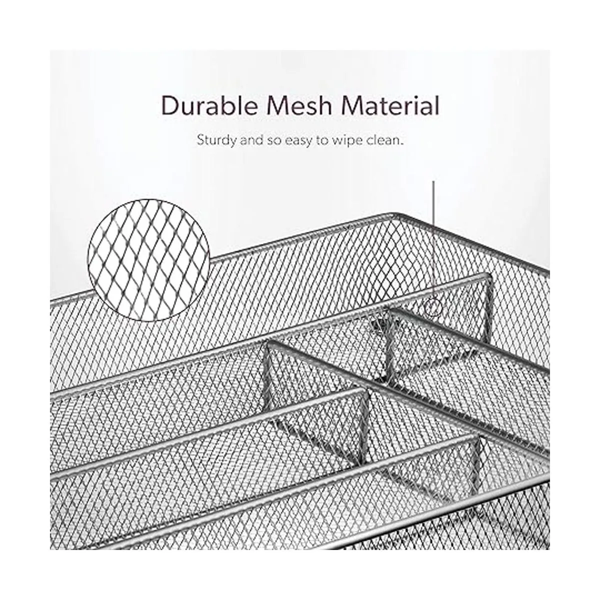 Construcción ligera pero fuerte. Bandeja de malla de acero resistente para cajones y organizar variedad de productos; resistente al óxido y protege los cubiertos de arañazos; patas de espuma antideslizantes para una mayor estabilidad.