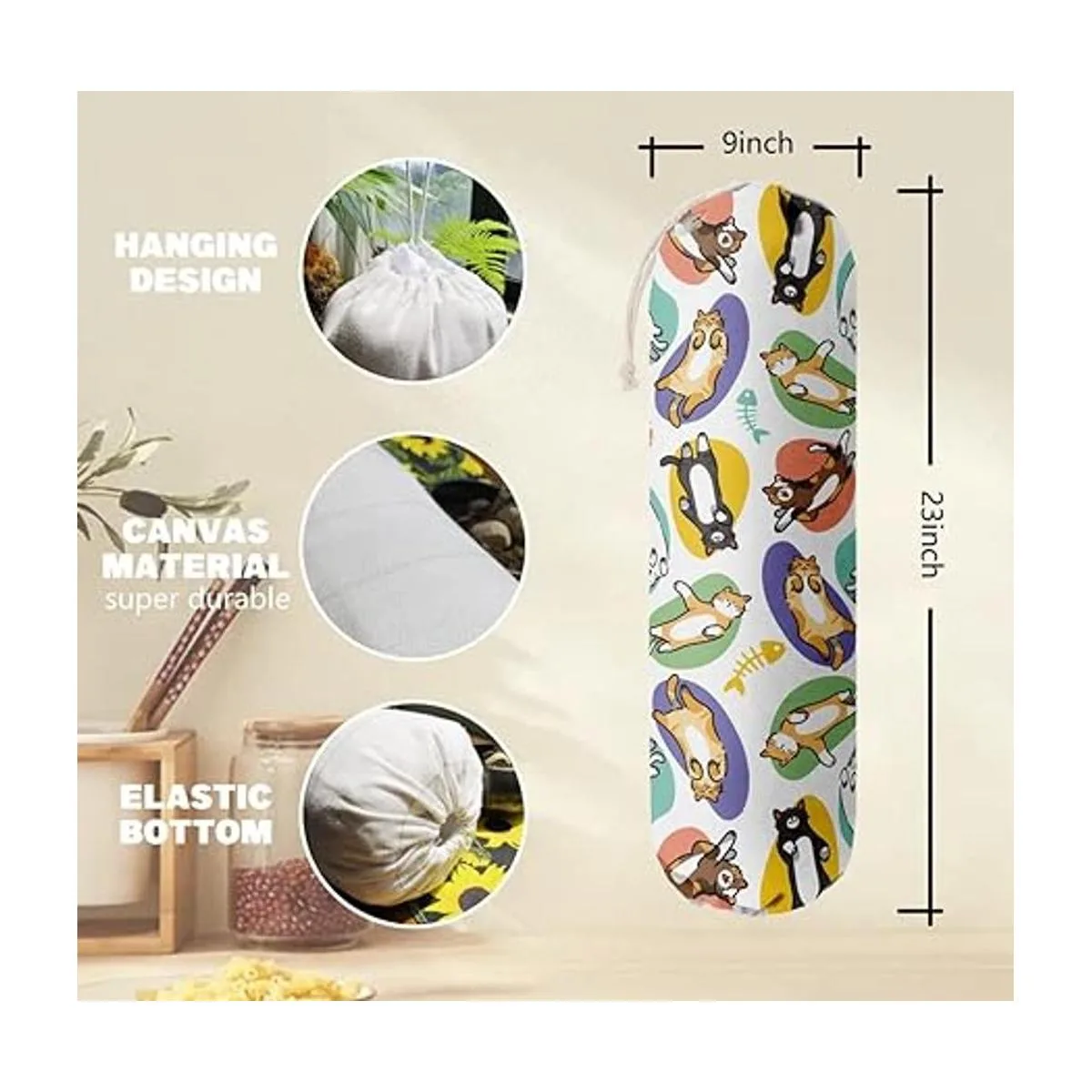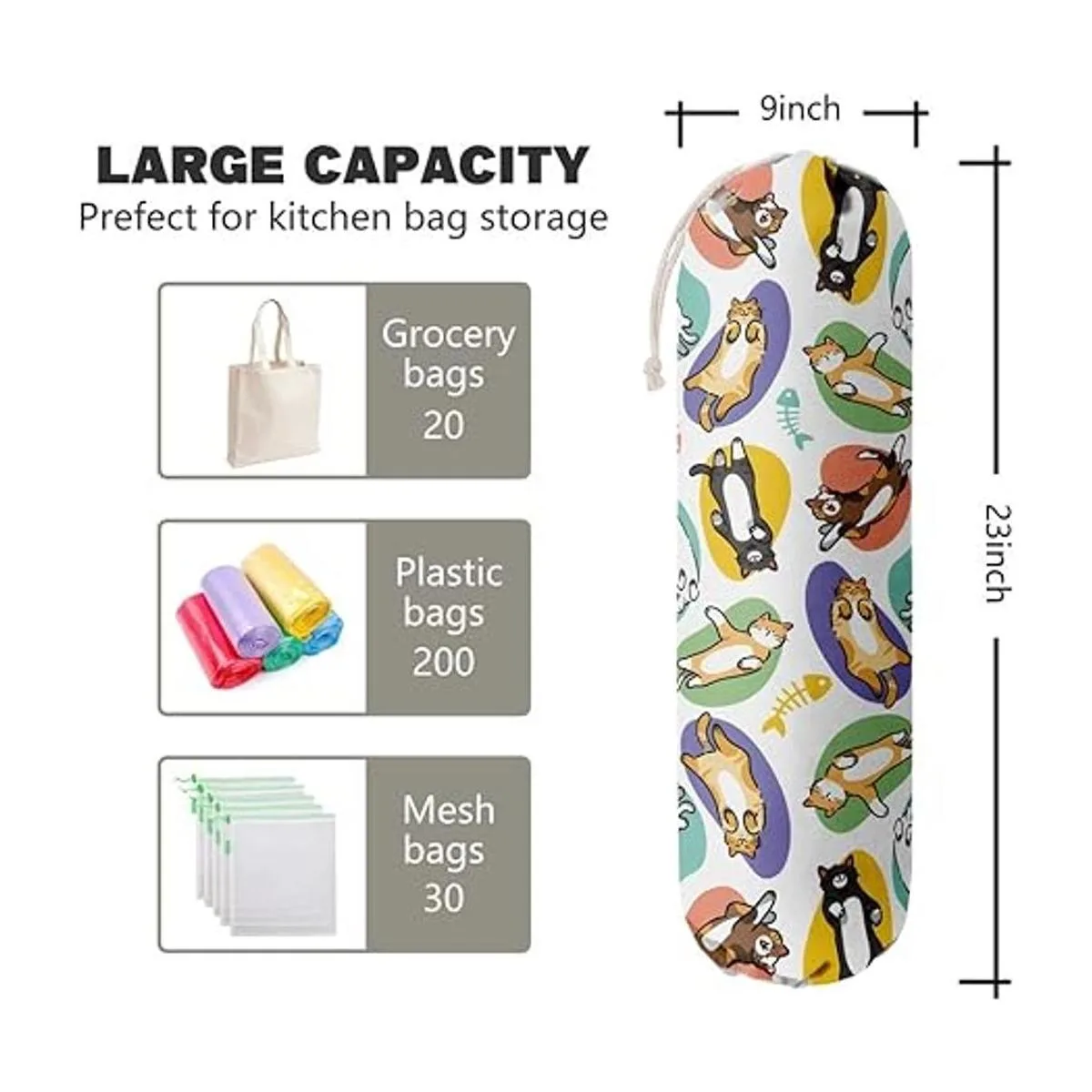 Organizador de bolsas de comestibles con patrón de gato para bolsas de compras, bolsas de plástico de montaje en pared, dispensadores de contenedores de almacenamiento, amantes de las mascotas, regalos de cocina para familiares, amigos, mamá gato, papá gato, mujeres
