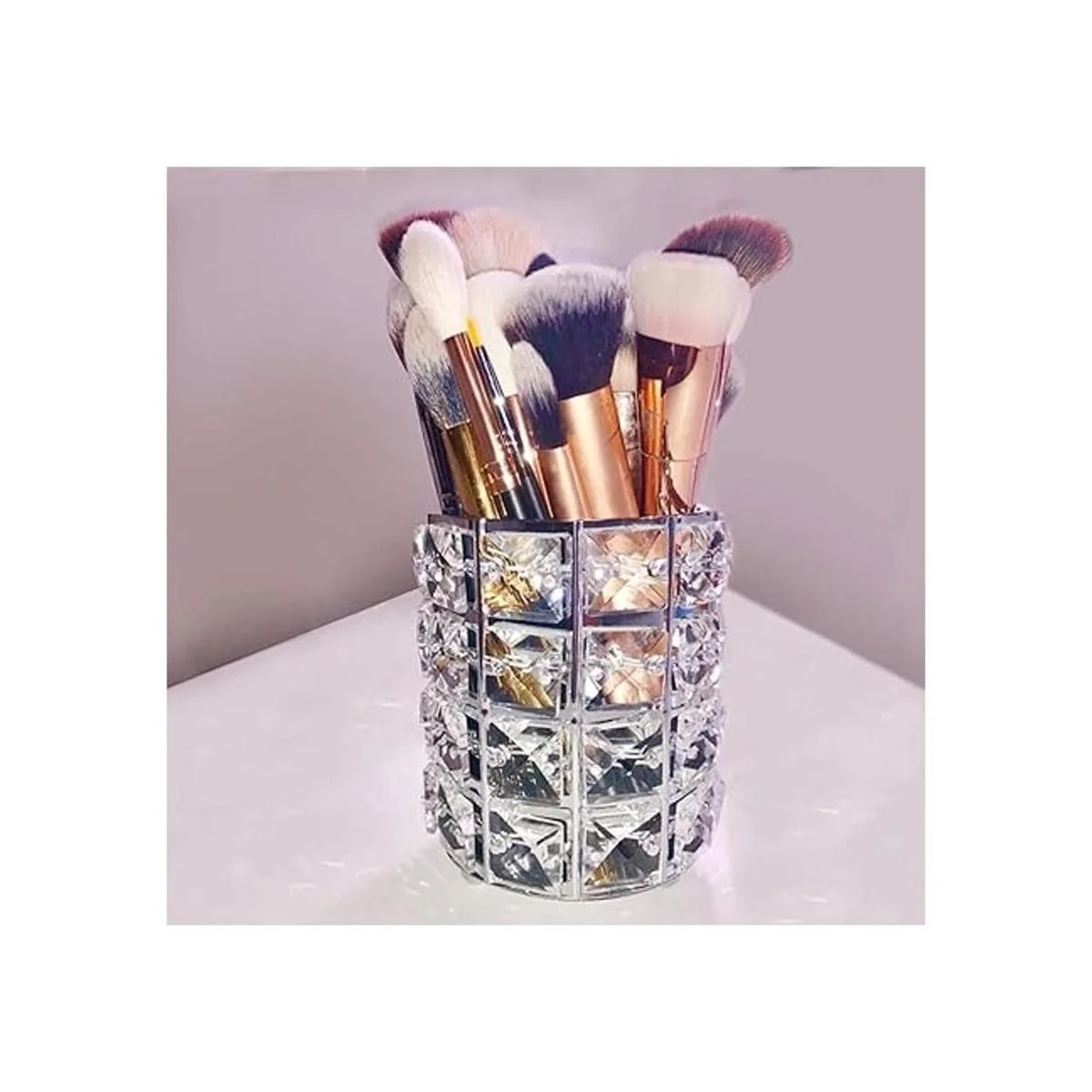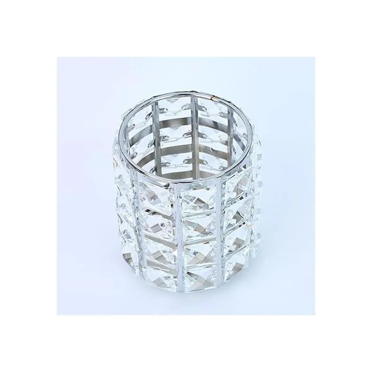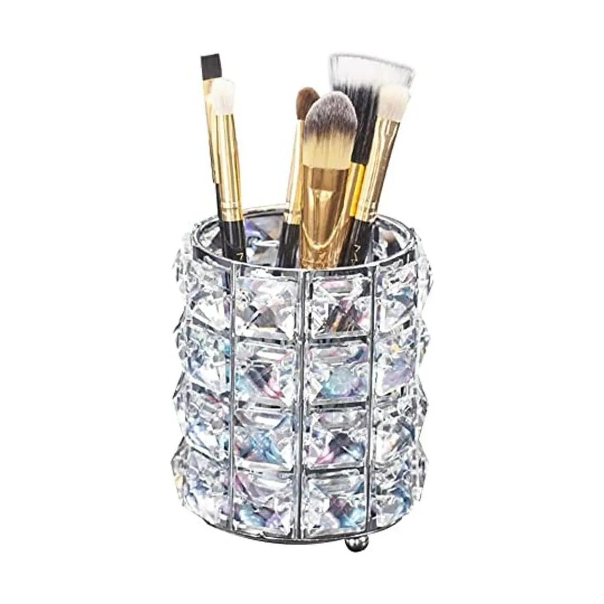 Organizador de brochas de maquillaje, cristal dorado, con diamantes dorados, personalizados, para peinetas, para lápices, caja de almacenamiento maceta de cristal plateada