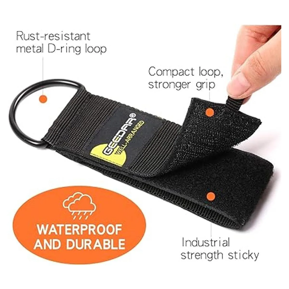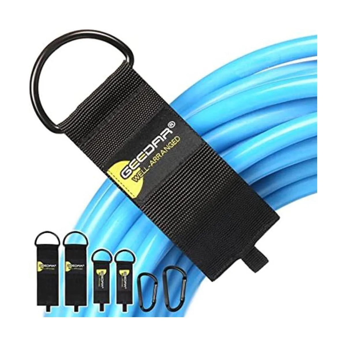 Resistente al óxido, resistente a la intemperie: el anillo en D está hecho de metal resistente al óxido de alta calidad, adecuado para la mayoría de mangueras y cables de extensión. Las correas de almacenamiento de cordón están hechas de nailon de polipropileno de 900 denier de alta calidad, que es de grado comercial resistente a la intemperie y material súper duradero