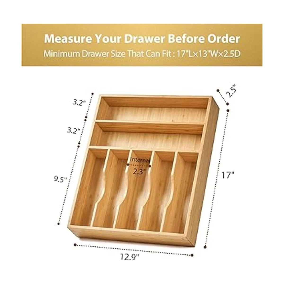 Tamaño perfecto de 17 x 13 pulgadas: recomendamos medir tu cajón antes de realizar el pedido. 2.5 pulgadas de profundidad, gana hasta un 20 más de capacidad de almacenamiento que otros organizadores de 2 pulgadas de profundidad. 5 ranuras horizontales para tenedores, cuchillos, cucharas y 2 ranuras horizontales más grandes para utensilios de cocina más grandes como espátulas, pinzas, cucharones y más.