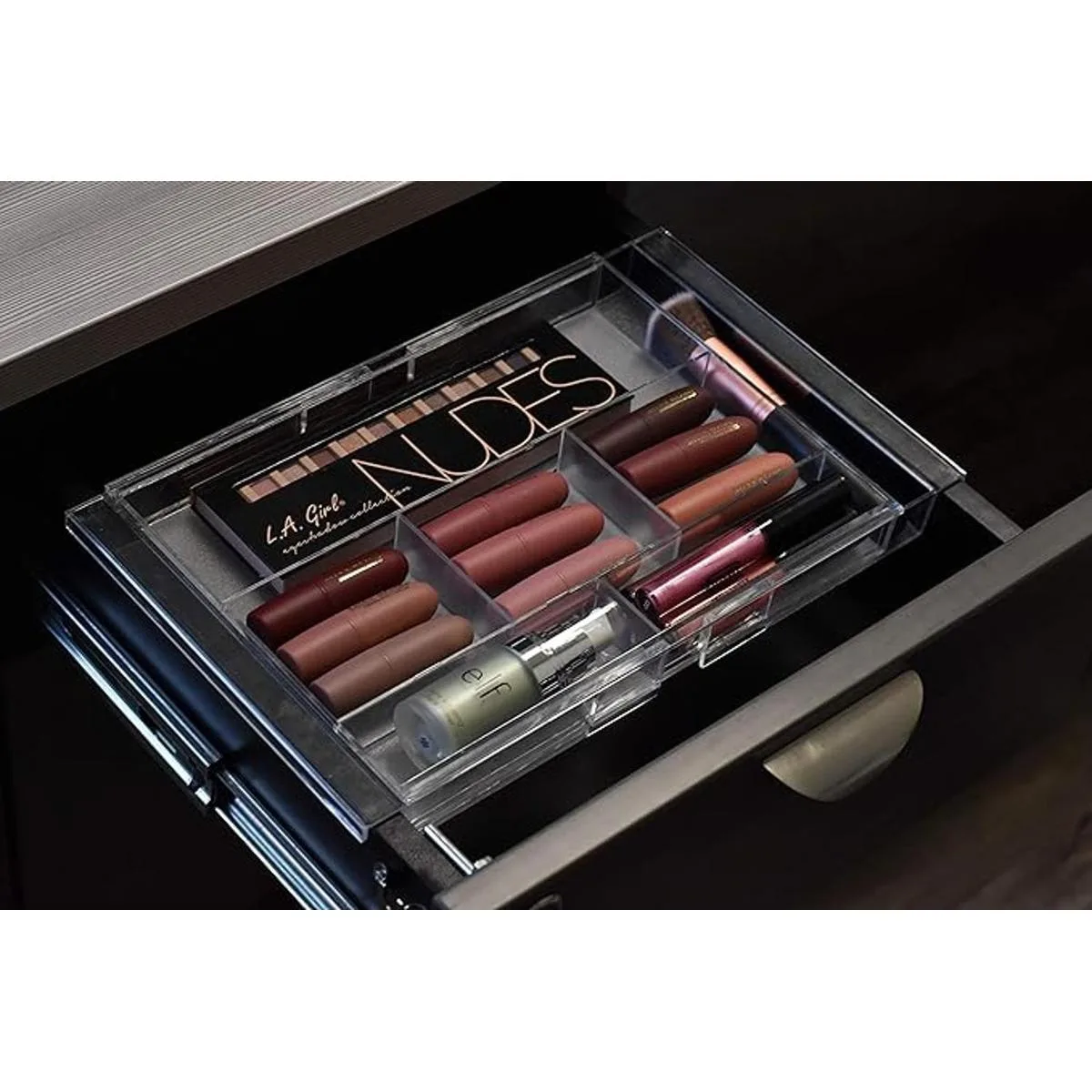 Mantén tus cajones ordenados organizando tu lápiz labial, sombra de ojos, pinceles, lociones, máscaras faciales o base en los 8 compartimentos diferentes de nuestras bandejas organizadoras expandibles.