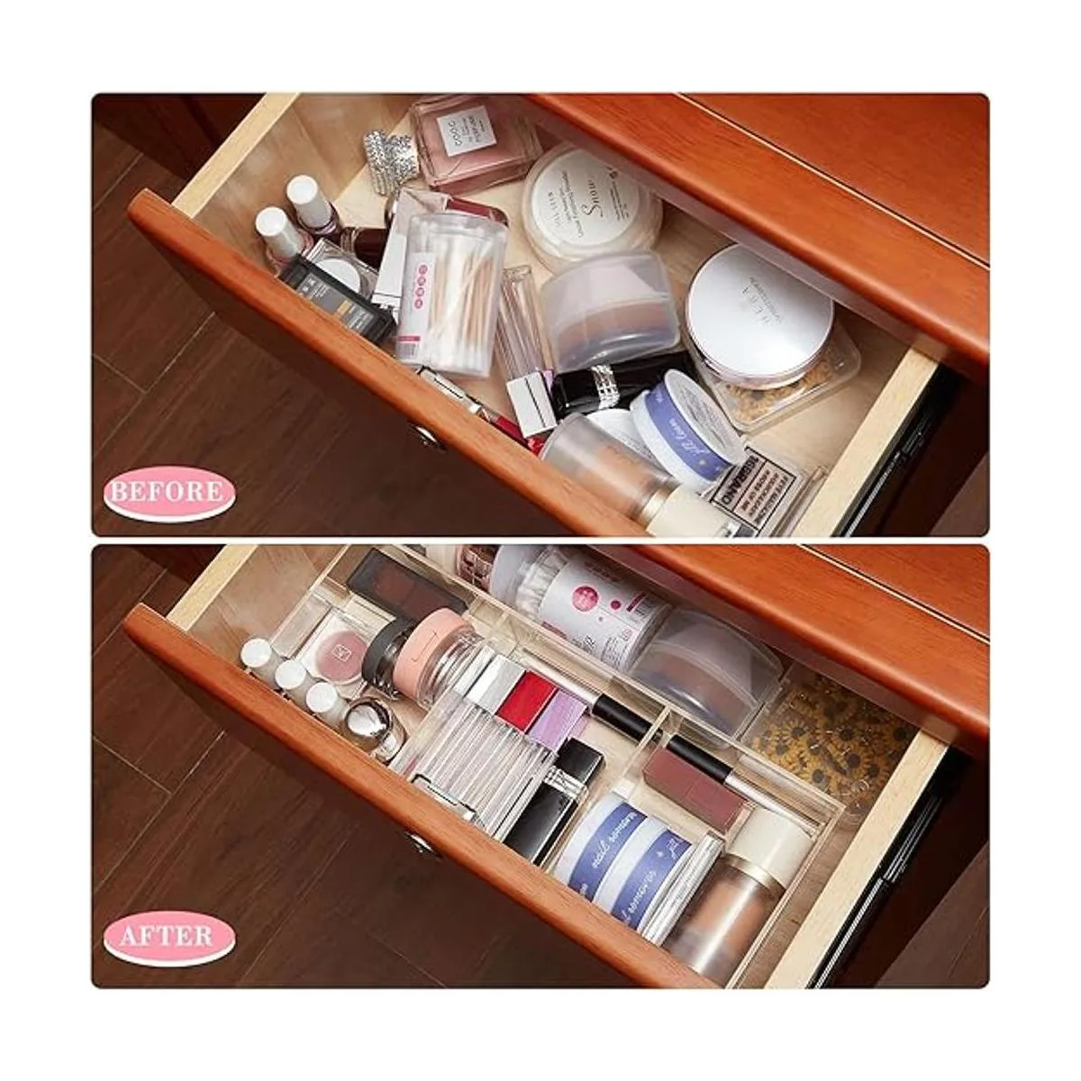 Ofrece servicio a largo plazo: estos organizadores de cajones transparentes están hechos de acrílico de calidad, que no es fácil de romper o deformar, seguro y fiable, no tienen mal olor, los bordes redondos garantizan que lo utilices de forma segura, puedes utilizar con confianza